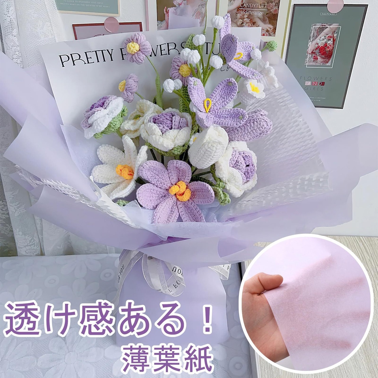 【使いやすい】紫 おはながみは全部約35cm×50cmのサイズにカットされて折り畳んで発送します。薄紙なので、簡単にちぎられ、特殊な形状の商品も包みやすくて、使い勝手がいいです。大判のサイズで、手芸用はもちろん、花束やプレゼントの包装紙にも適用できます。