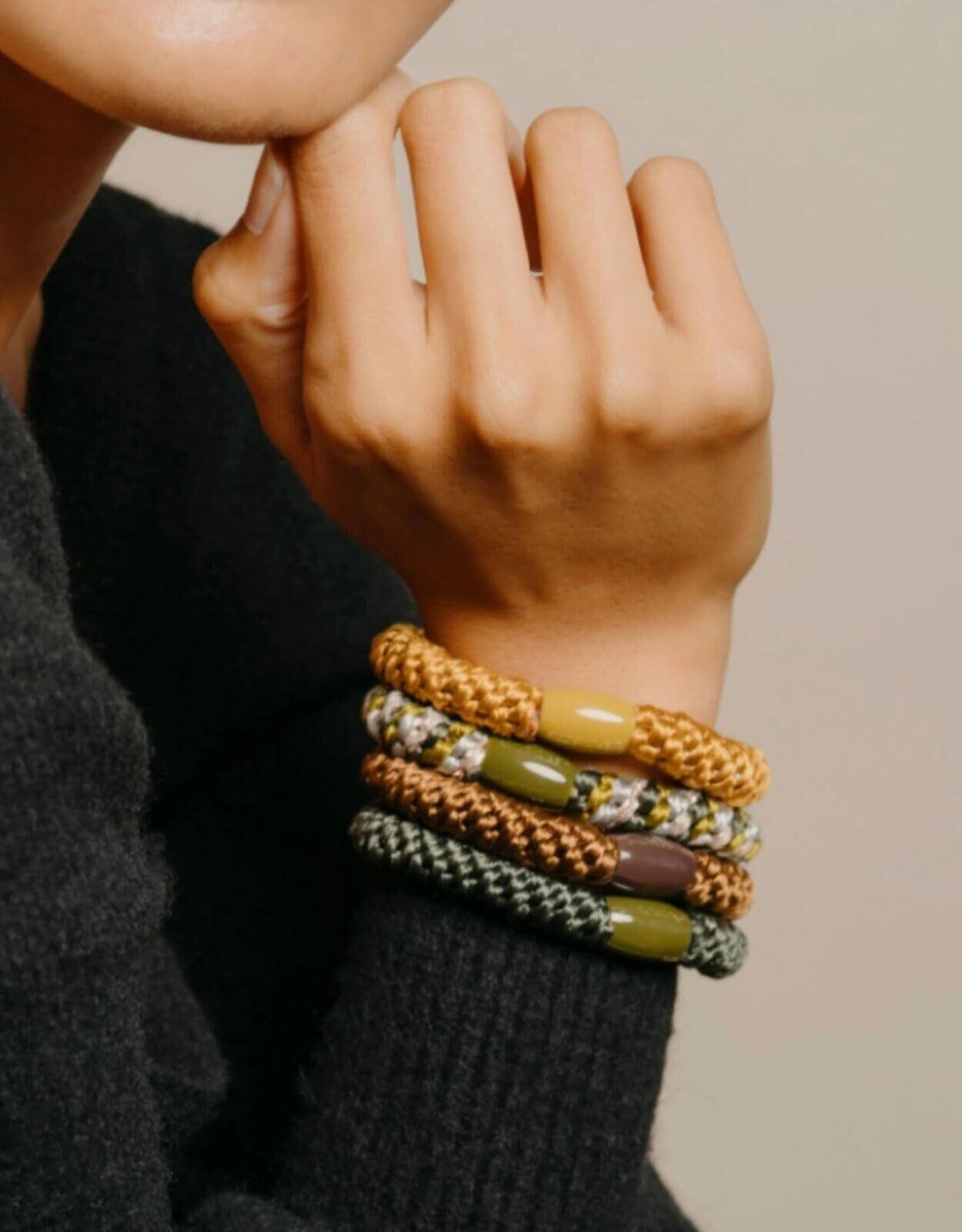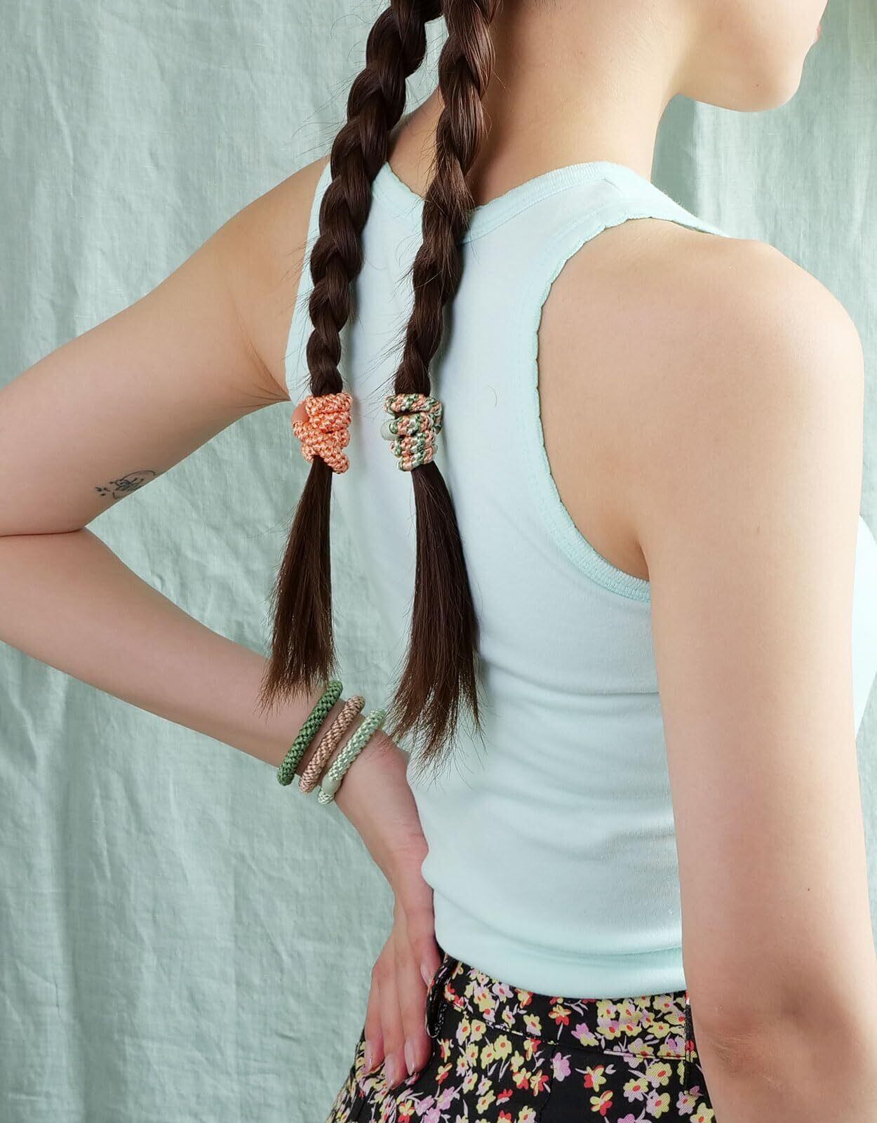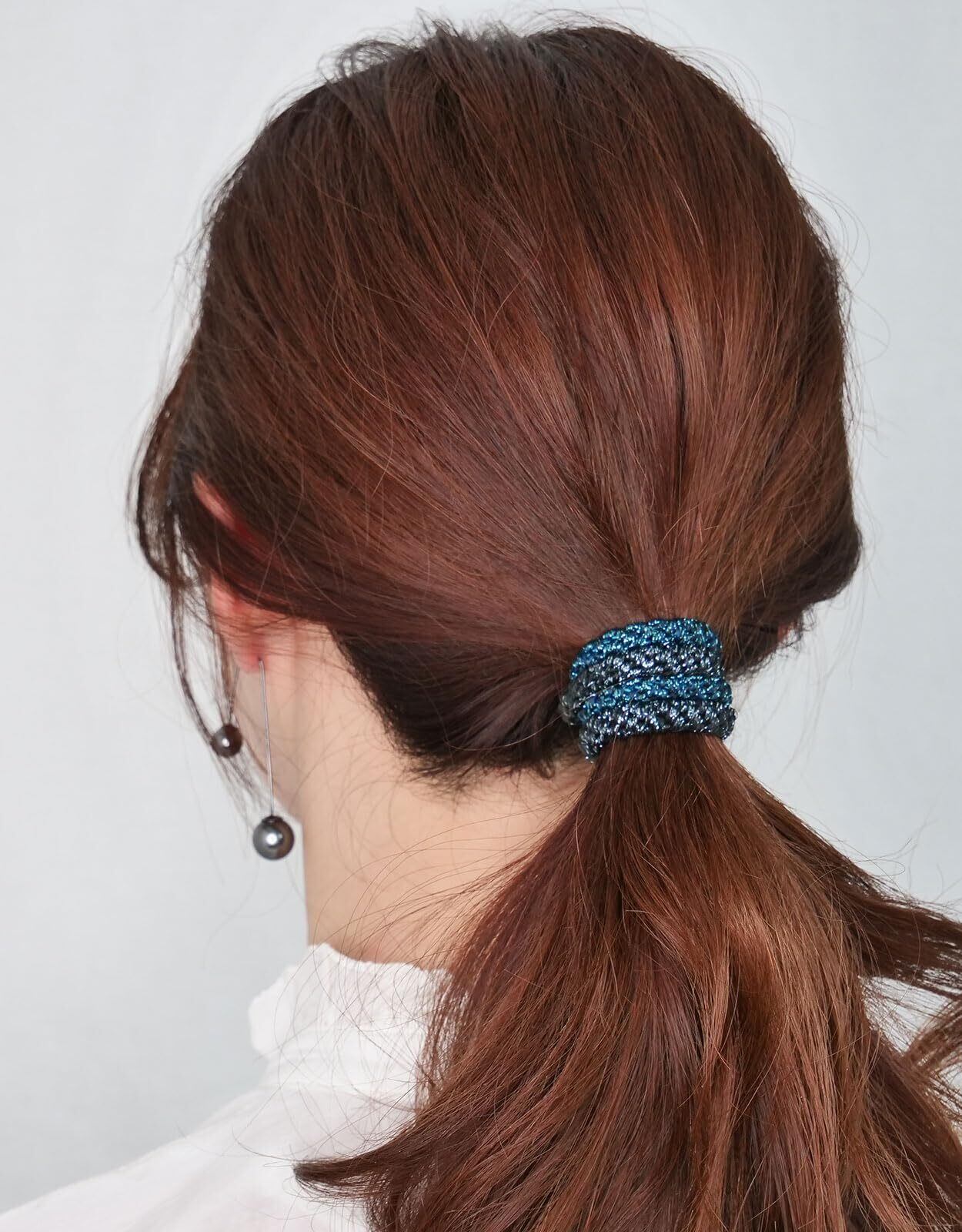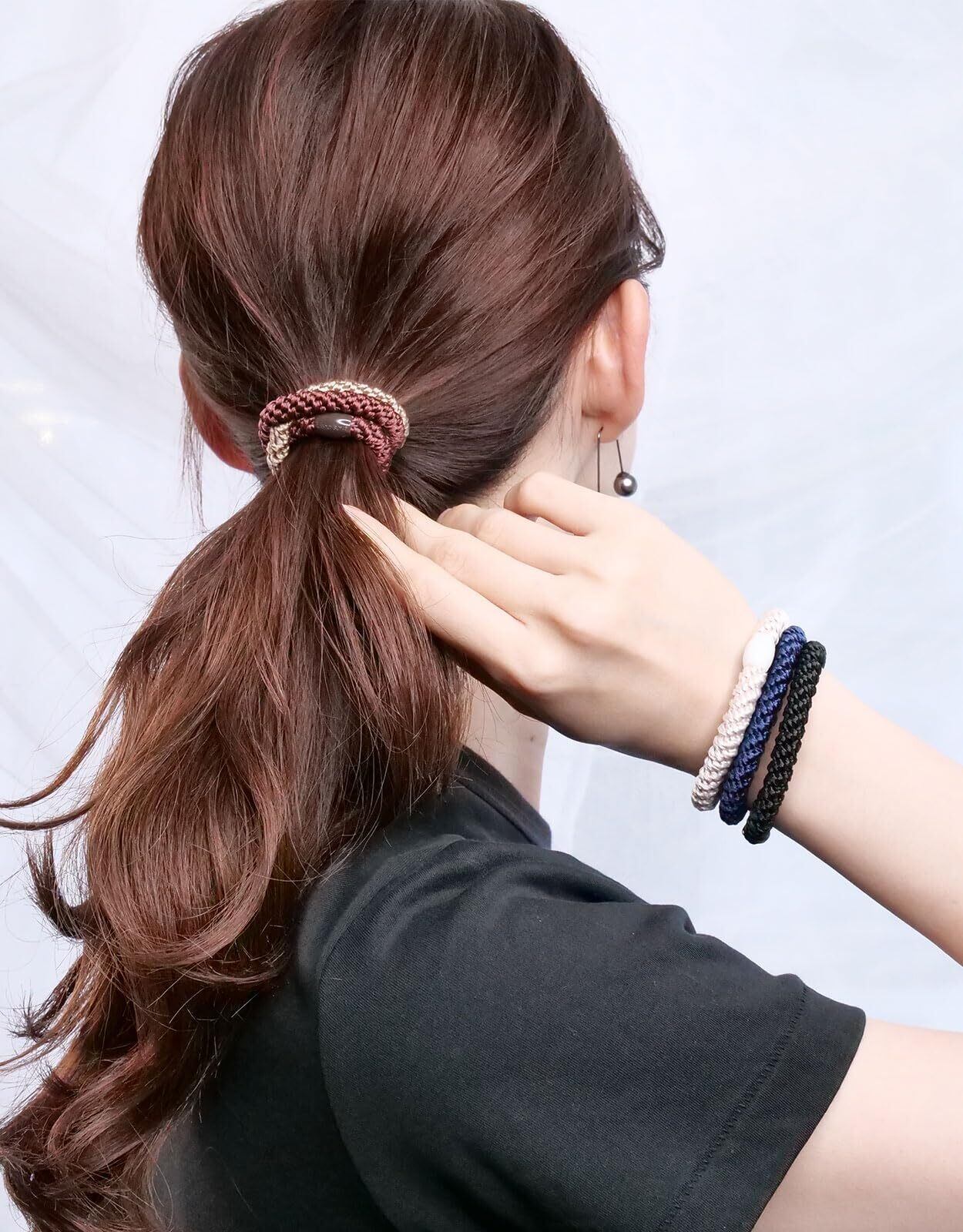 伸縮性に長けた繊維で編み込まれているので、髪が絡まりにくく、結び跡が残りにくい