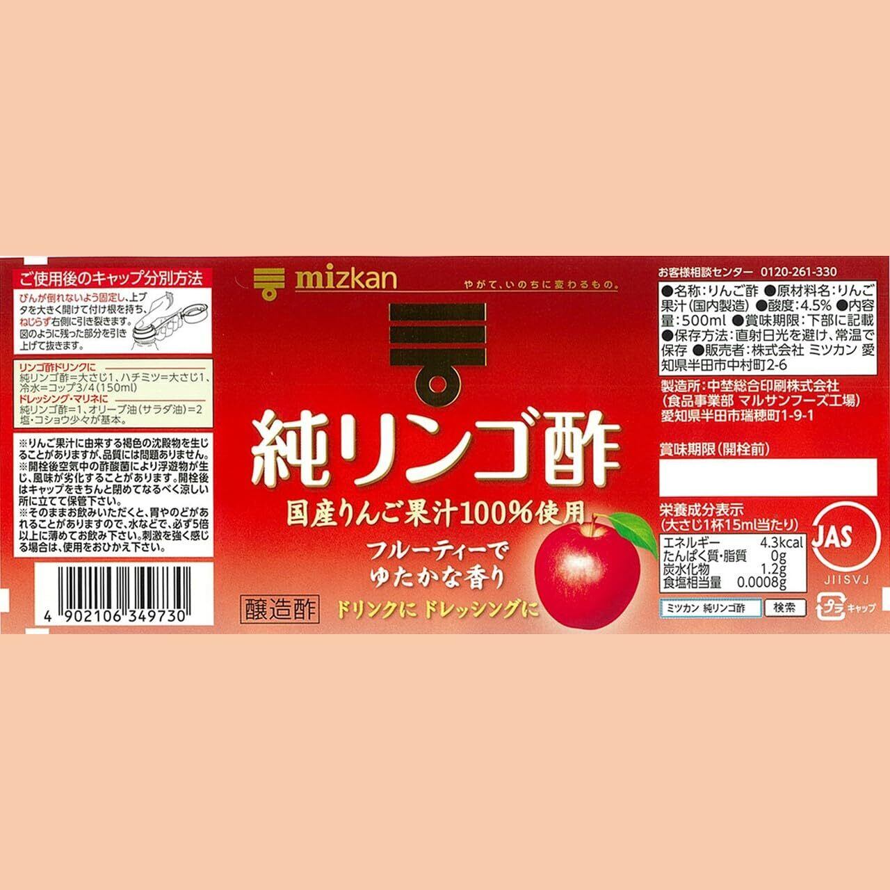 ミツカン 純リンゴ酢 500ml×2個