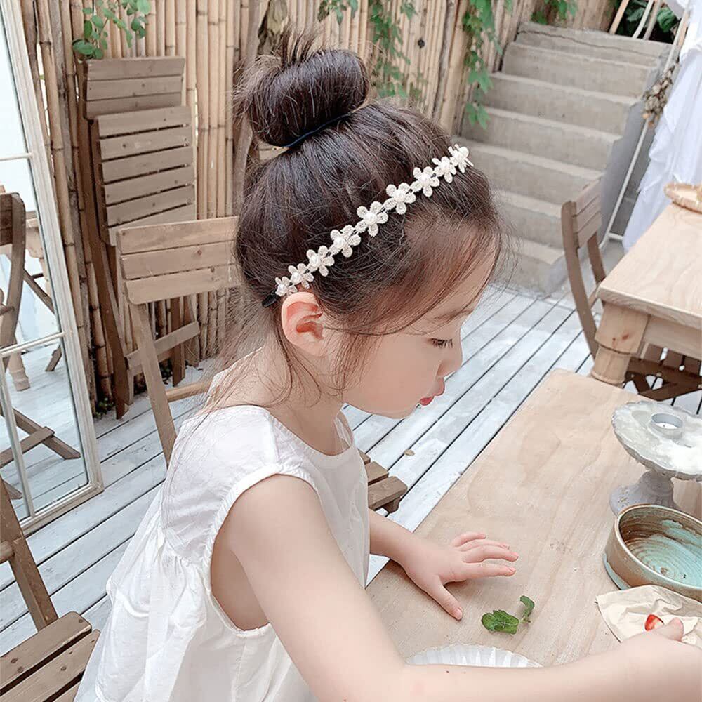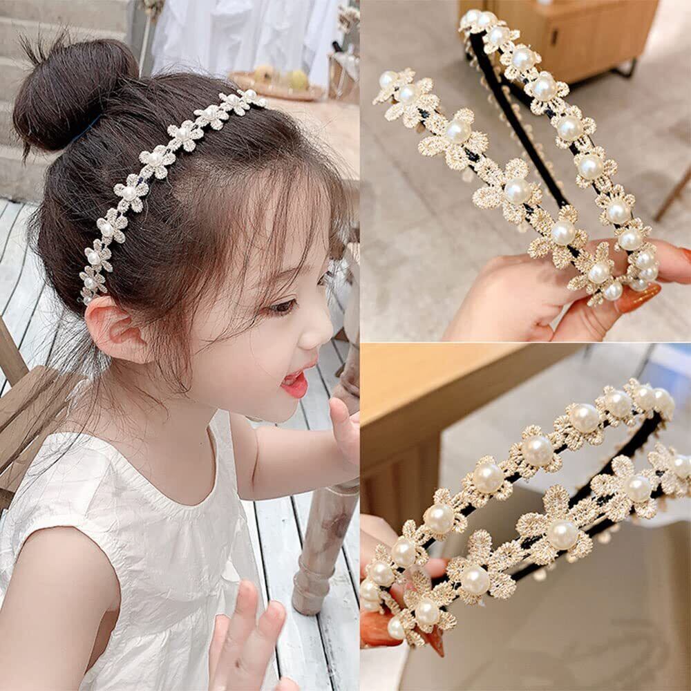 MOMI カチューシャ フラワーリボン カチューシャ キッズ ヘッドドレス キッズ 子供 パール 髪飾り 子供 カチューシャ 写真撮影 卒業式 入学式 記念撮影 (2個入り)