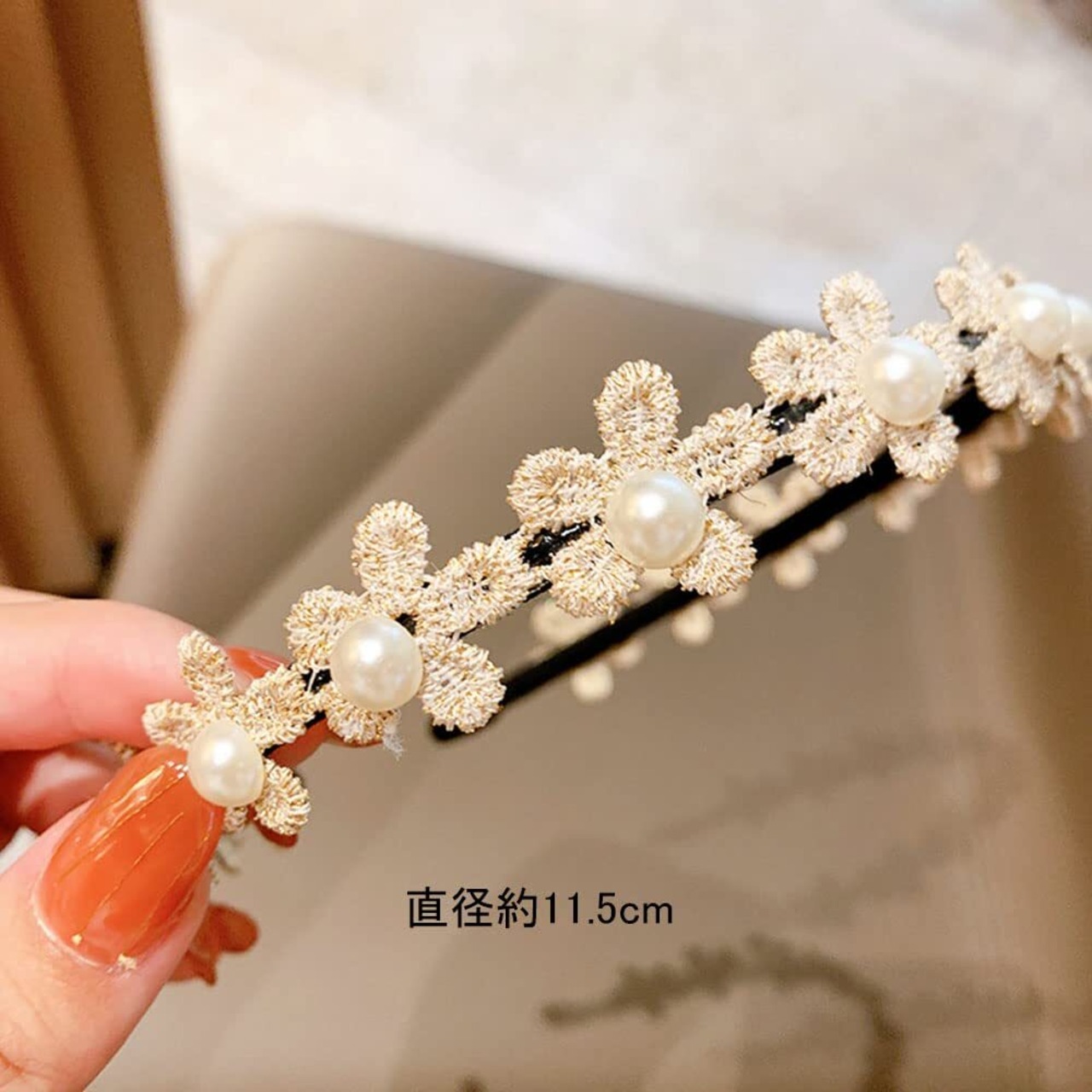 【商品詳細】 上品なパールを贅沢に使ったかわいいキッズカチューシャです。