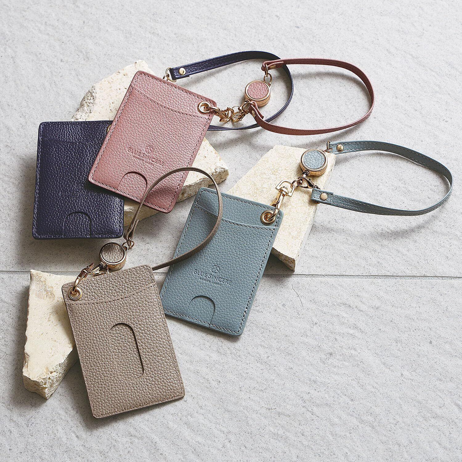 [BLUE SINCERE] ブルーシンシア パスケース リール付き 本革 定期入れ レディース シュリンクレザー 2枚 両面 伸びる ストラップ付き icカードケース / PC3