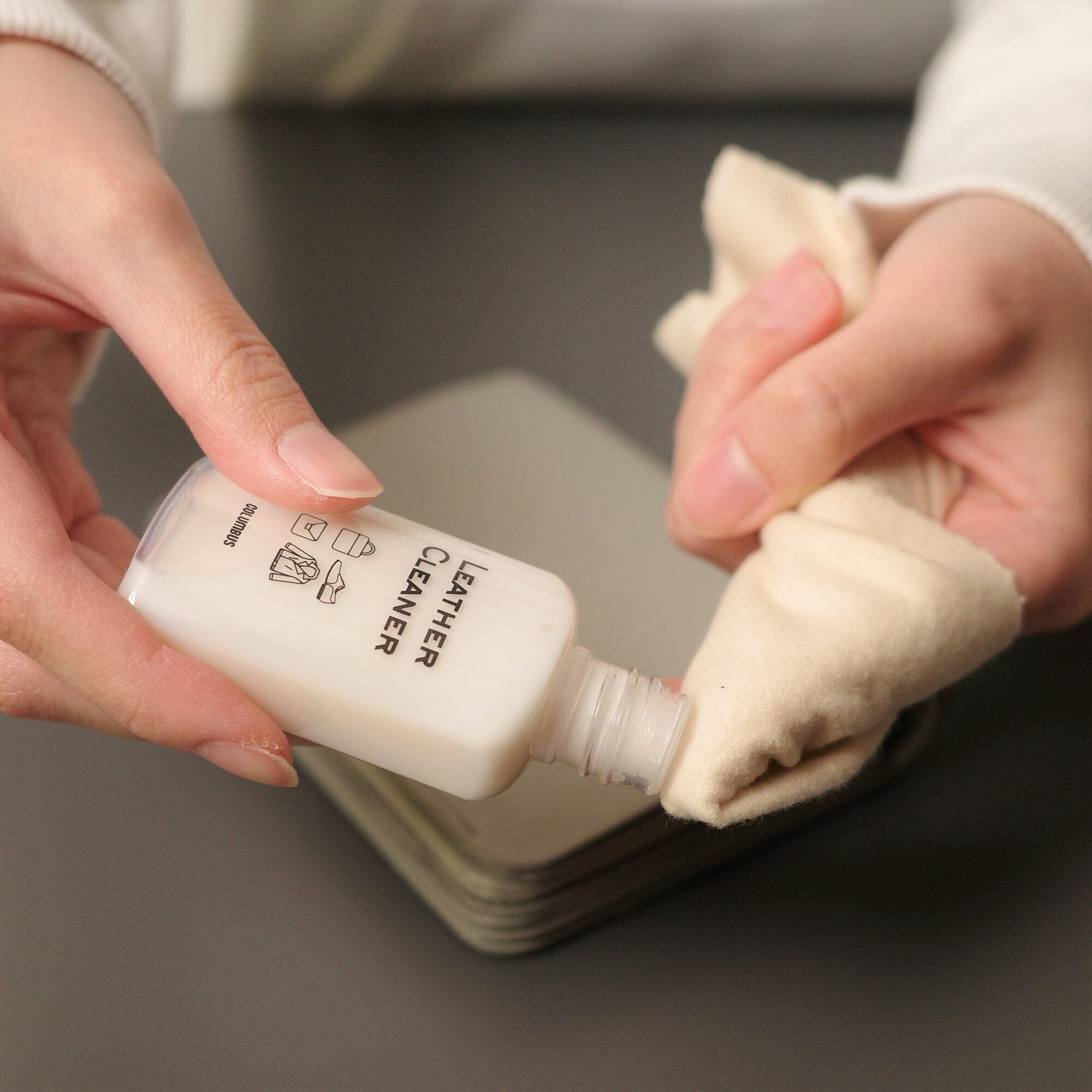 ●革製品のお手入れに必要なクリーム、クリーナー、塗布用パフ、クロスをセットにしました。●革小物、カバン、などのお手入れに最適です。●クリームはみずみずしいソフトジェルタイプ。ツヤ出し・保革効果を得られます。●汚れ落としはサラッと仕上がるローションタイプ。●クリーム塗布用のコロパフをセットに。革製品の隅々まで届く柔らかパフです。●綿クロス2枚入りです。