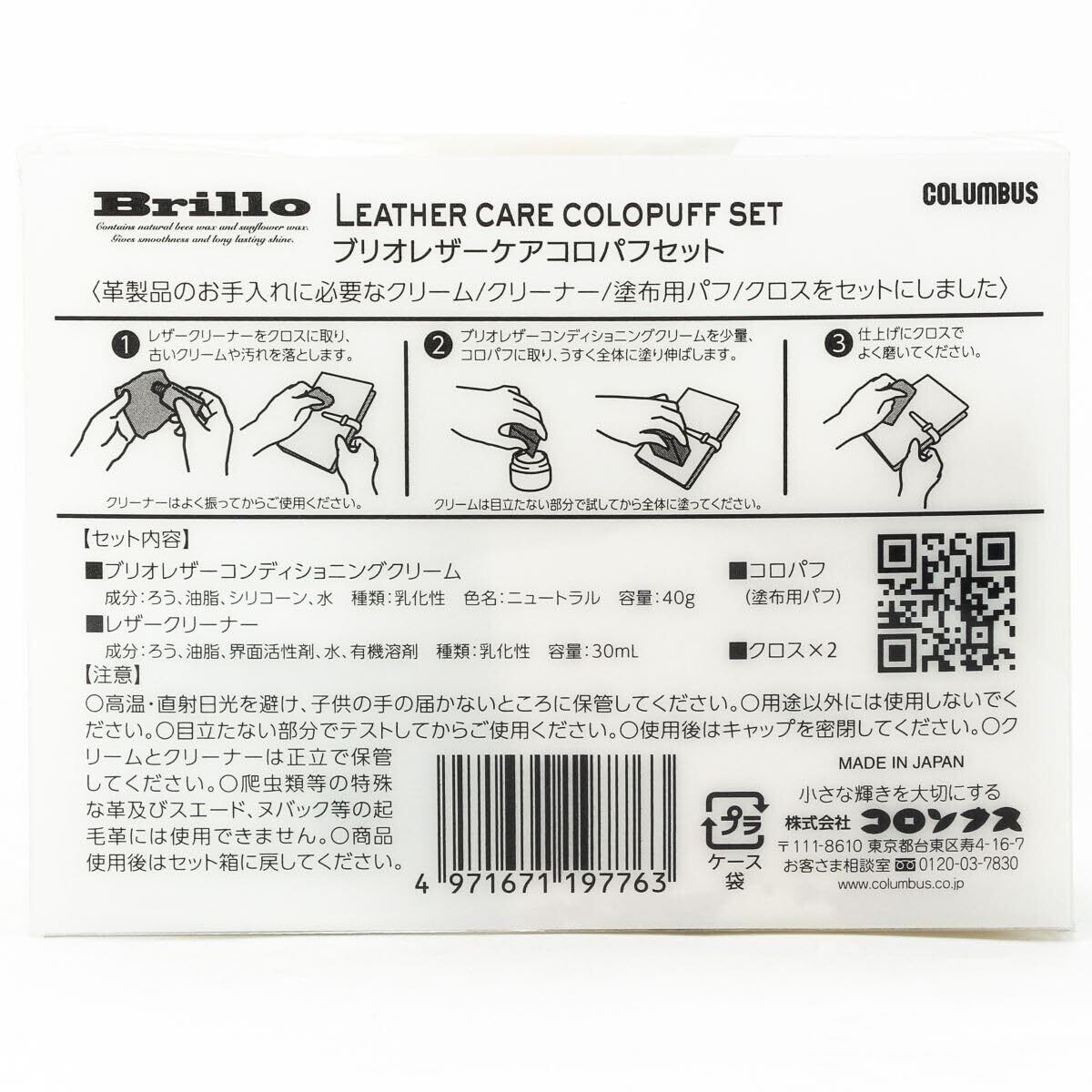[コロンブス] 革製品のメンテナンス 栄養 保革 汚れ落とし ブリオレザーケアセット 塗布用パフセット