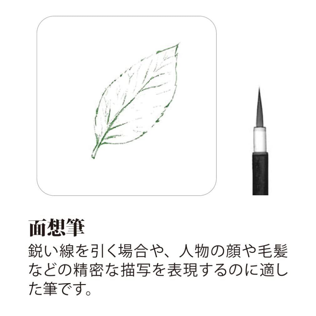 【特徴】絵の具の含みが良い「彩色筆」と、線引きや細部の彩色、細密な描写に適した「面想筆」