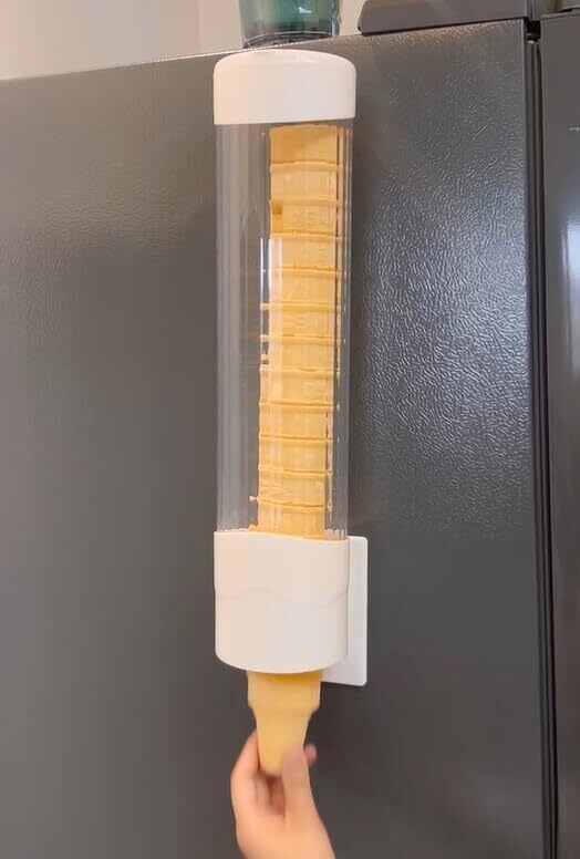 使いやすい~このコーンディスペンサーでカップ、コーンをお手軽に一つずつ取り出せます。