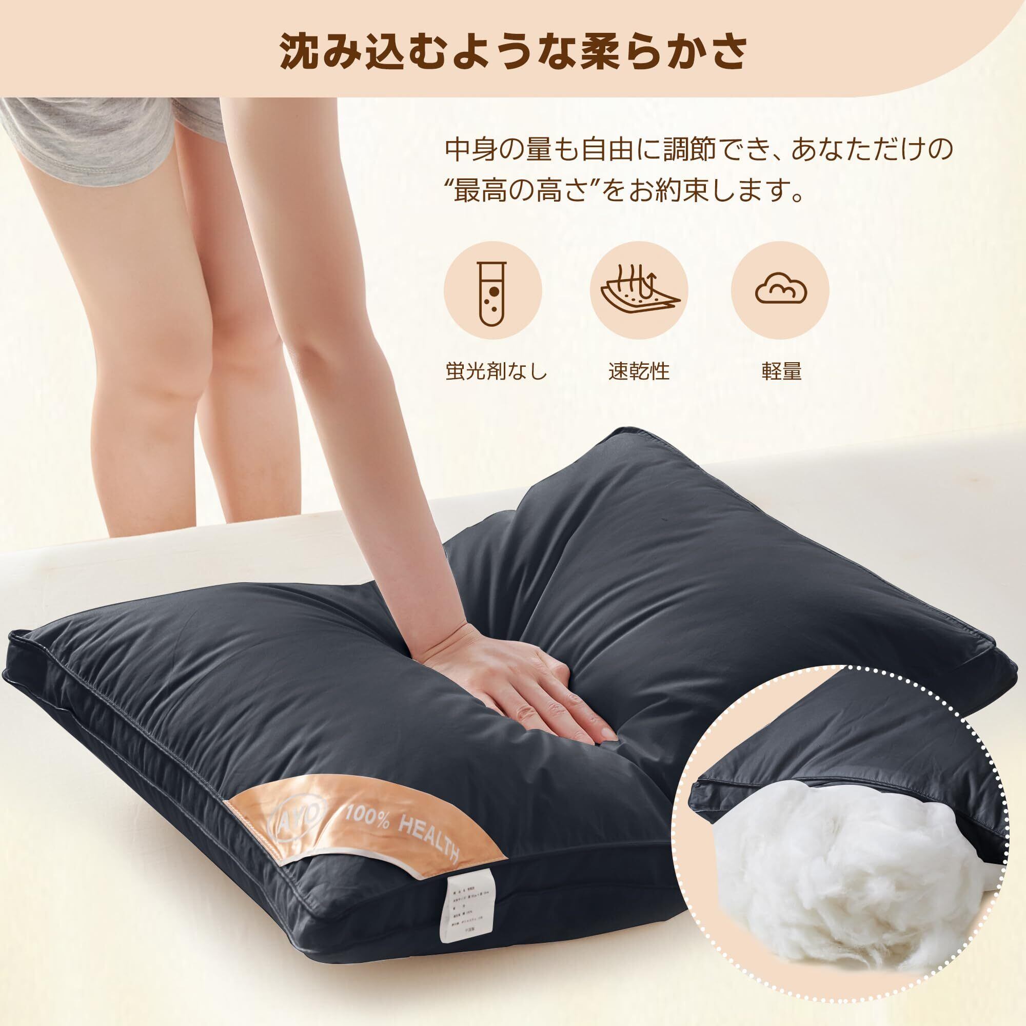【高さ調整】低めの枕がお好みの方は、ファスナーを開けてから、綿の出し入れでお好みの高さでできますように 調整することがますす。