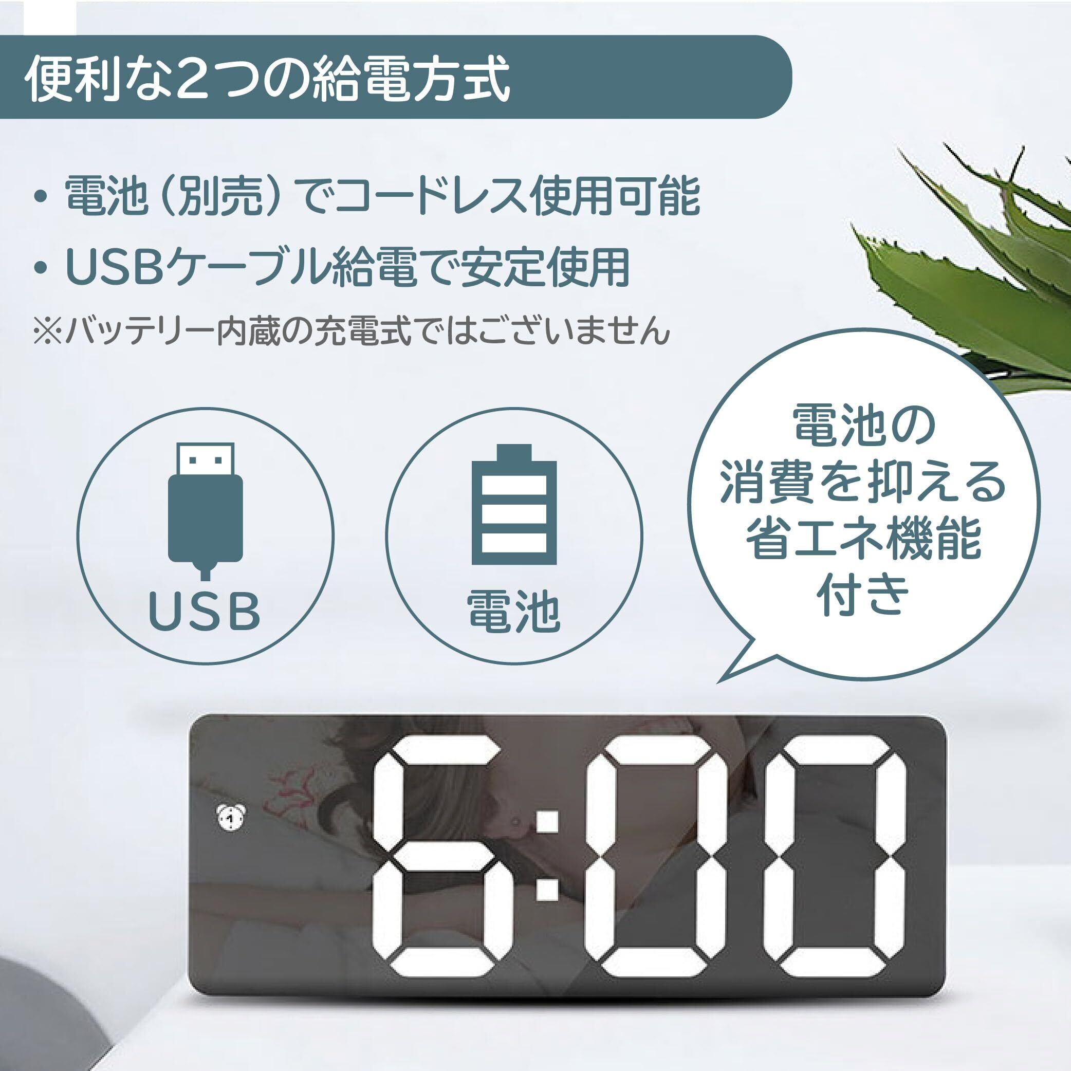 PENGUINFLY 置き時計 デジタル 目覚まし時計 置時計 静音 電池式 USB給電 卓上時計 おしゃれ 小型 オシャレ (黒本体×白ライト)