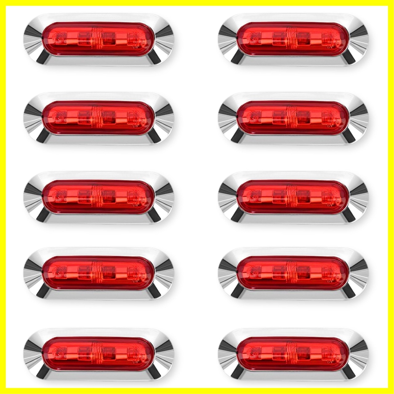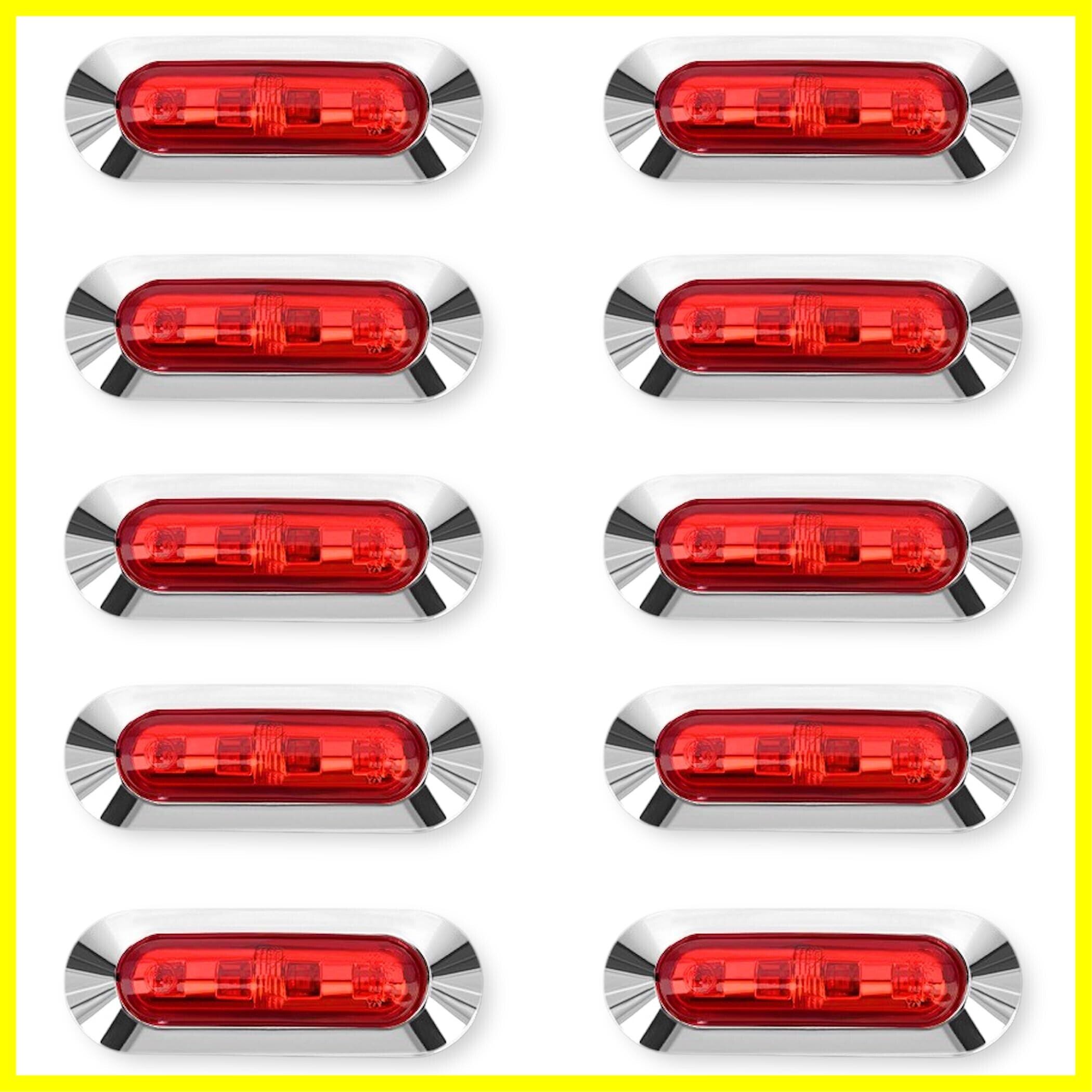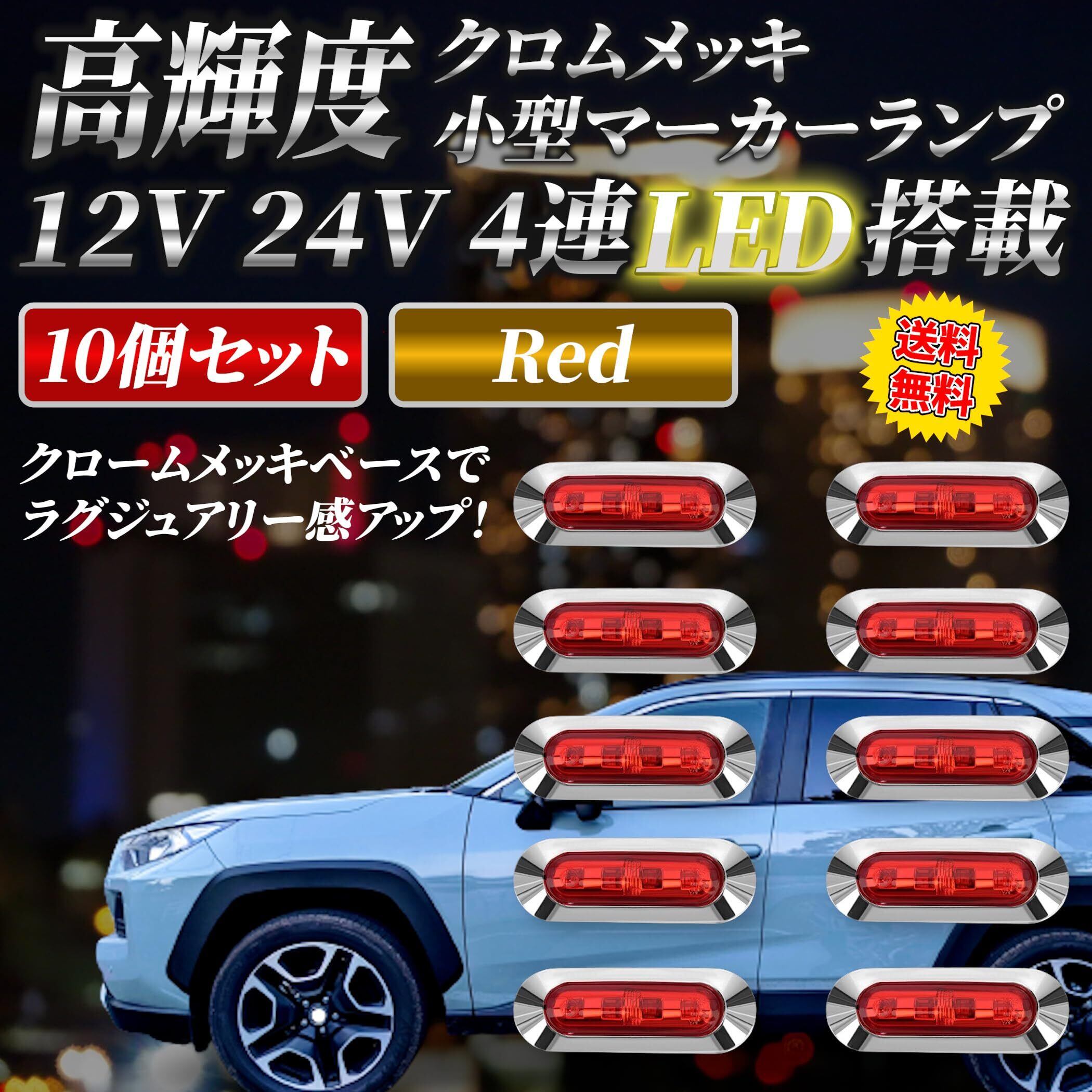 Lezalic LED 4連 カラーレンズ 10個セット 12V 24V 高輝度 小型 ランプ サイド マーカー 防水型 トラック メッキ カスタム (レッド)