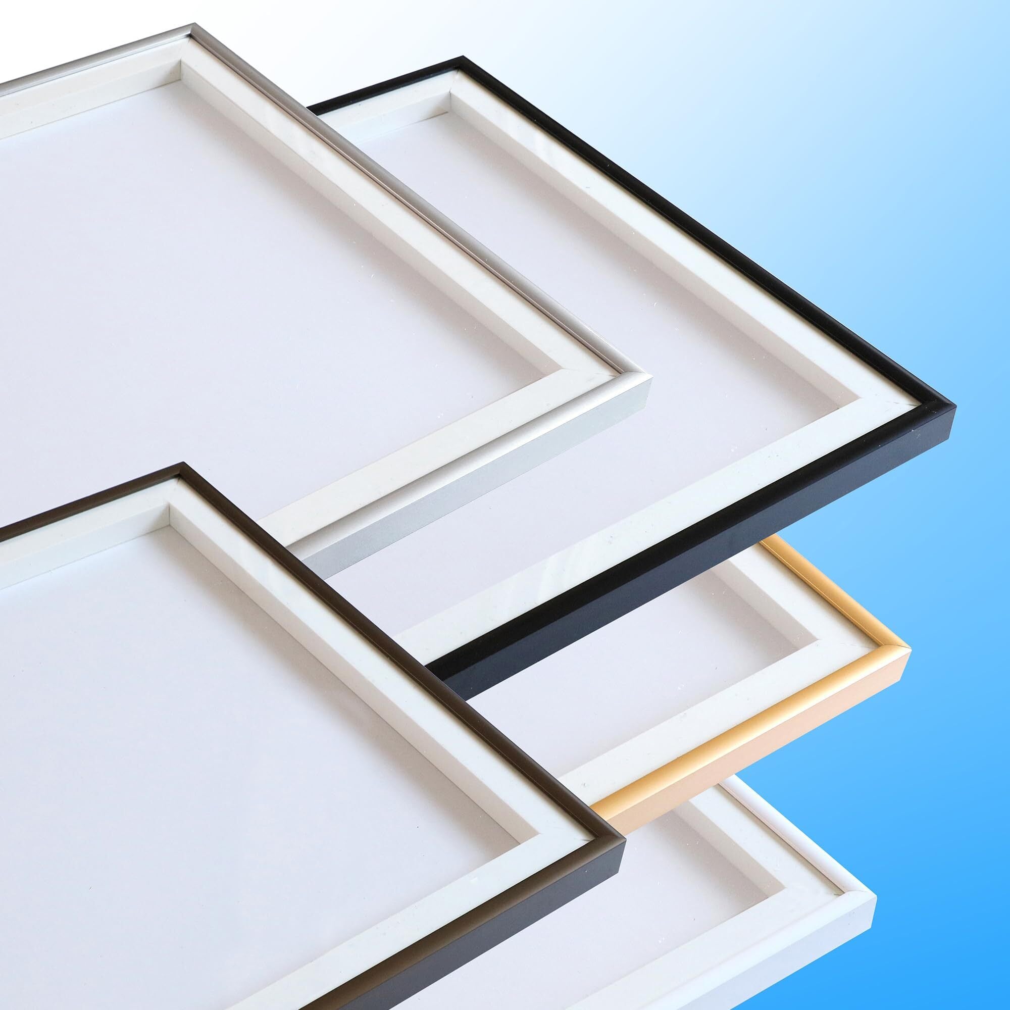 【樹脂ハンガー付属】アルミ製の軽量前開き式フレーム。作品セットが簡単で、透明板・ハンガーはPET樹脂製なので落としても割れません。卒業記念品や卒団記念品に最適。フレーム色は控えめなツヤ消しゴールドです。