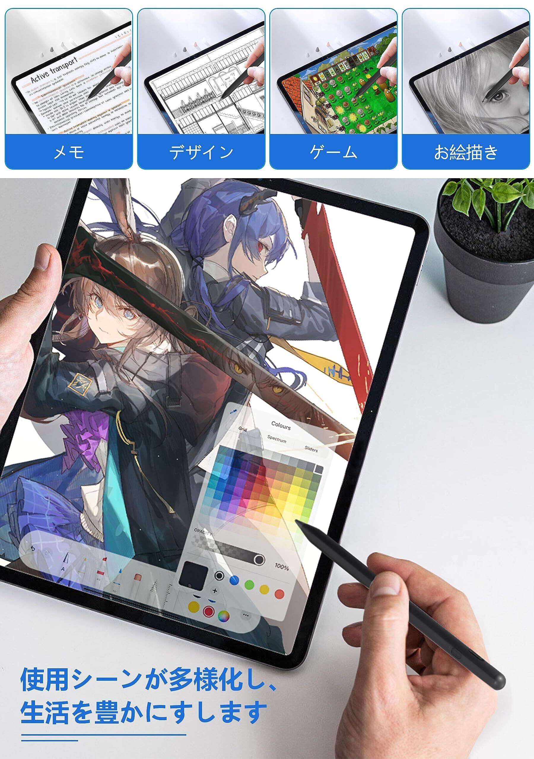 【うっかりタッチ防止&磁気吸着機能】パームリジェクション機能を搭載しており、デバイスの画面に手を置くことができ、より快適で自然な感触を提供します。創作意欲・インスピレーションが妨げられる心配がありません。磁気吸着機能があり、紛失を防ぎ、収納や持ち運びも簡単です。iPad Pro 12.9"、iPad Pro 11"、iPad Air 第4/5世代、iPad mini第6世代など、磁気吸着機能対応デバイスに対応しています。何をする時も驚くほど使いやすく、アイデアが浮かんだ瞬間を逃しません。(注:iPad側面が円弧状のエッジは磁気吸着しにくい可能性があります)