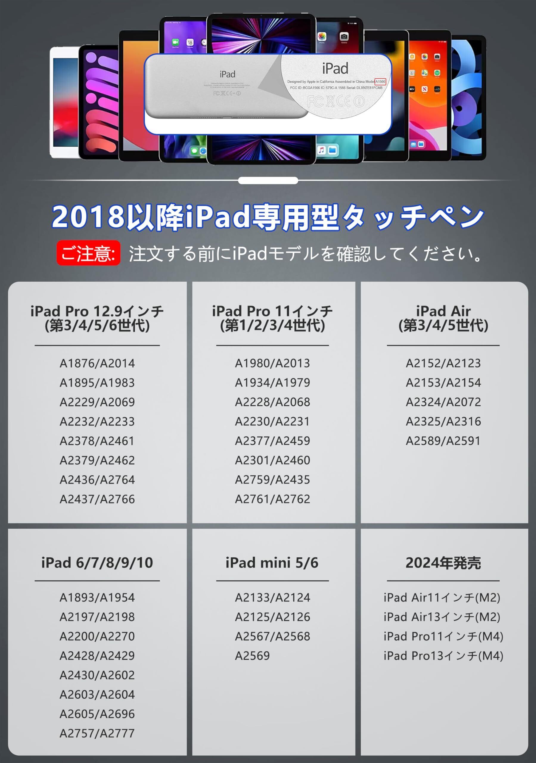 【2018年以降のiPad専用ペンシル】2018年から2025年のiPadモデルに対応しています。iPad Air 11インチおよび13インチ(M2) 2024/(M3) 2025、iPad Pro 11インチおよび13インチ(M4)、iPad 第11 世代 A16 2025、第10世代、iPad 9/8/7/6世代、iPad Mini 7 A17 Pro/6/5世代など、多くのiPadモデルと互換性があります。製品に関して何か問題があった場合は、お気軽にご連絡ください。お問い合わせ方法:アカウントサービスの「アカウントサービス」→「注文履歴」→「販売者」→「質問」からお気軽にお問い合わせください。