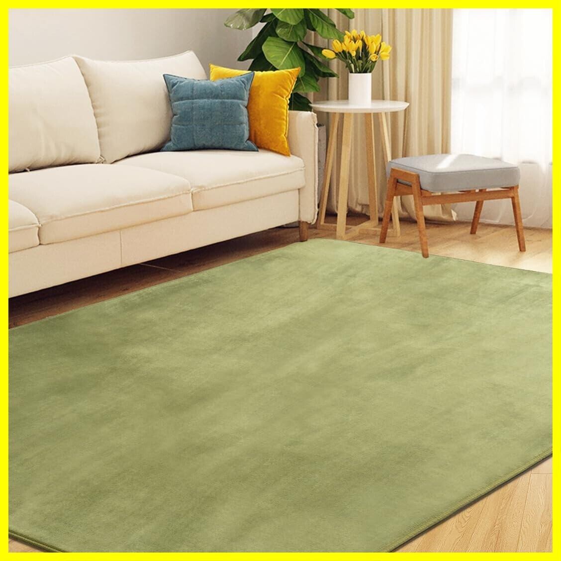 aicomri カーペット ラグ ラグマット 1.5畳 洗える 厚约7mm 130×185cm じゅうたん 滑り止め ホットカーペット対応 カーペット オールシーズン 抗菌防臭 防ダニ 撥水加工 床暖房対応 フランネル らぐまっと 無地・グリーン