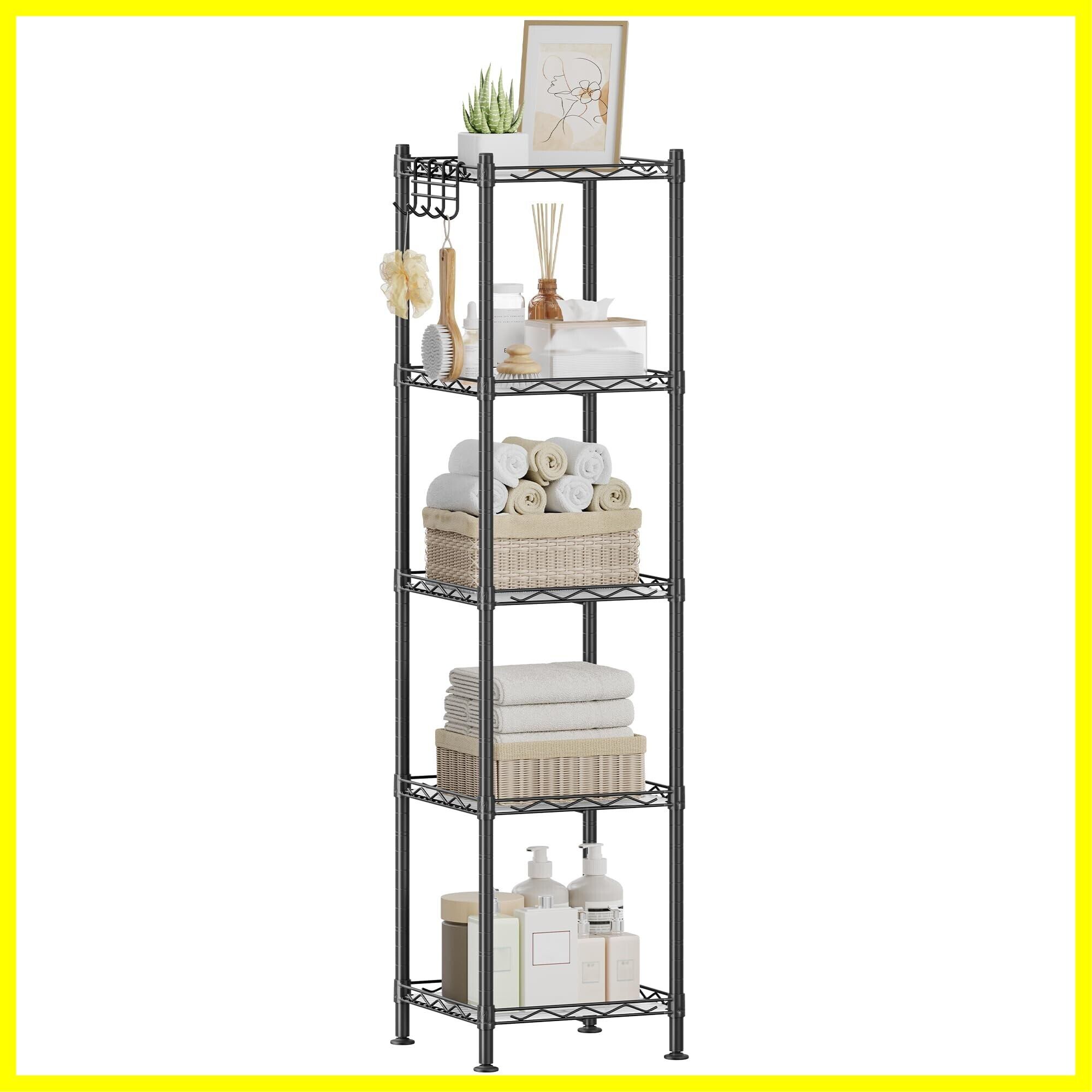 【隙間収納】30cm×30cmしか取らない省スペースの5段階収納ユニットです。5段の棚があり、豊富な収納スペースを提供し、各種入浴用品やタオルなどを整理して収納することができ、浴室をより整然とさせます。キッチン収納・リビング収納・玄関の収納棚・洗面所の収納棚など、色々なシーンで使える薄型で省スペースなラックです。