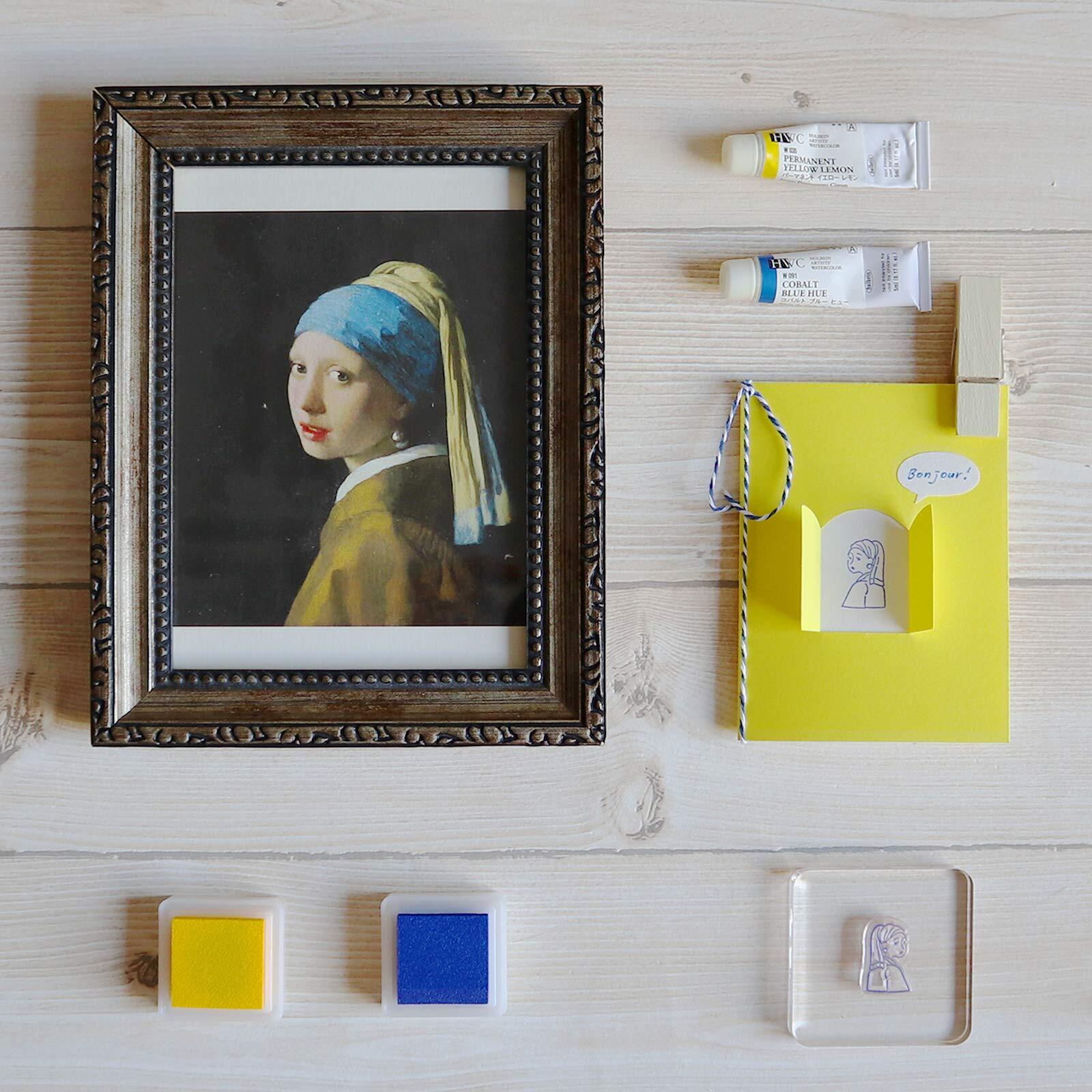 1. フィルムからクリアスタンプ(パーツ)を剥がし、貼付けやすい透明なもの(例:アクリルブロック)に付けます。