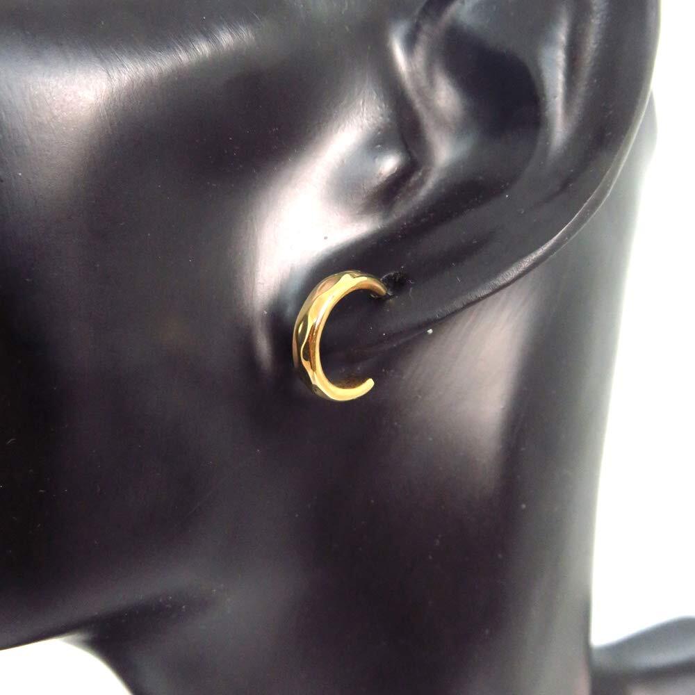 定番中の定番ともいえるシンプルフープピアス!ロングセラーのリング型半円フープピアスで、誰でもどんなコーディネートスタイルにも使える人気ブランドアクセサリー!普段使いに最適なので、どんな時にもつけっぱなしで使えるのが最大のメリット!表面に凹凸を作ってシンプルすぎるフープに飽きてしまった方におすすめ!カラーバリエーションはシルバー、ゴールドの2色展開で取り揃えております。若者に人気の韓国系ストリートファッションの相性抜群で、これは外せない1つは必ず持っておきたいピアス!
