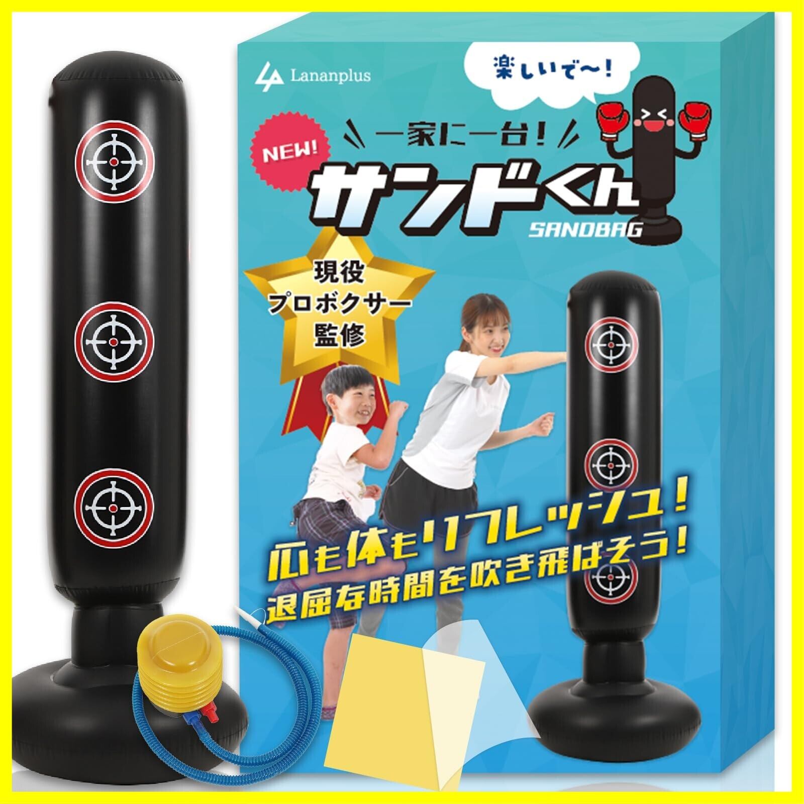 サンドバッグ 【現役プロボクサー監修】 パンチングマシーン 自宅用 ボクシング 自立型 子供 大人 エアポンプ付き サンドくん Lananplus