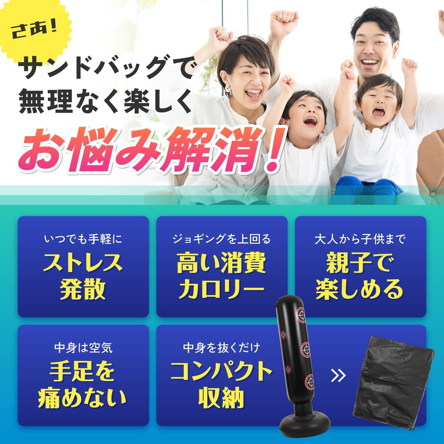 【現役プロボクサー監修】Lananplusのサンドバッグ(パンチングマシーン)で、大人も子供も楽しく、ストレス発散・運動不足解消!ボクササイズや親子で遊ぶのにピッタリ!ボクシングや空手などの練習も自宅で気軽にできます。楽しく体を動かしてスカッとストレス発散しましょう!