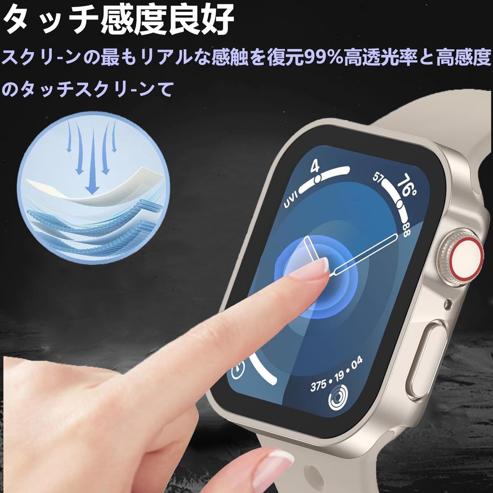 【全面保護&衝撃に強い】アップルウォッチ カバー seはハイビジョン液晶ガラスを採用し、9Hの硬度透明度の高い液晶ガラス素材で作れられており、LCDスクリーンの擦り傷のことを防ぐことができます。 最大限に本体を保護できます。設備を最大限に保護します。透明度が高いため、快適本体を操作できます。