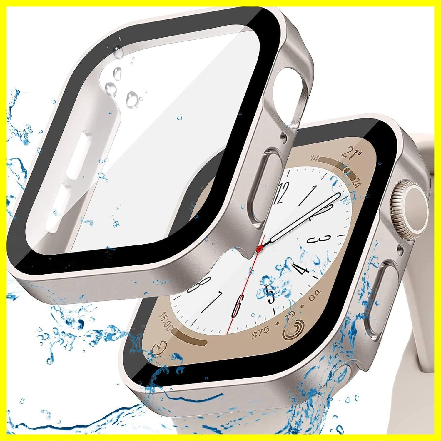 AIYYXX アップルウォッチ カバー 46mm 45mm 44mm 42mm 41mm 40mm 対応 あっふウォッチカバー 41mm 防水 一体型 新デザイン 3D直角エッジ 超薄型 PC+ガラス素材 高透過率 キズ防止 耐衝撃性 全面保護 apple watch カバー Series 11/10/9/8/7/SE3/SE2/SE/6/5/4(41mm,防水のスターライト)