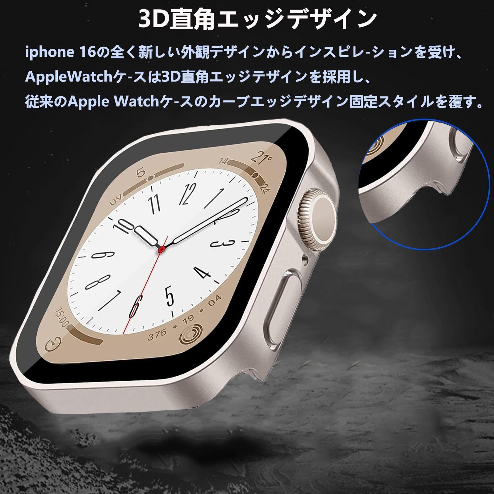 AIYYXX For apple watch カバー 46mm 45mm 44mm 42mm 41mm 40mm 対応 あっふウォッチカバー 41mm 防水 一体型 新デザイン 3D直角エッジ 超薄型 PC+ガラス素材 高透過率 キズ防止 耐衝撃性 全面保護 apple watch se カバー Series 11/10/9/8/7/SE3/SE2/SE/6/5/4(41mm,防水のスターライト)
