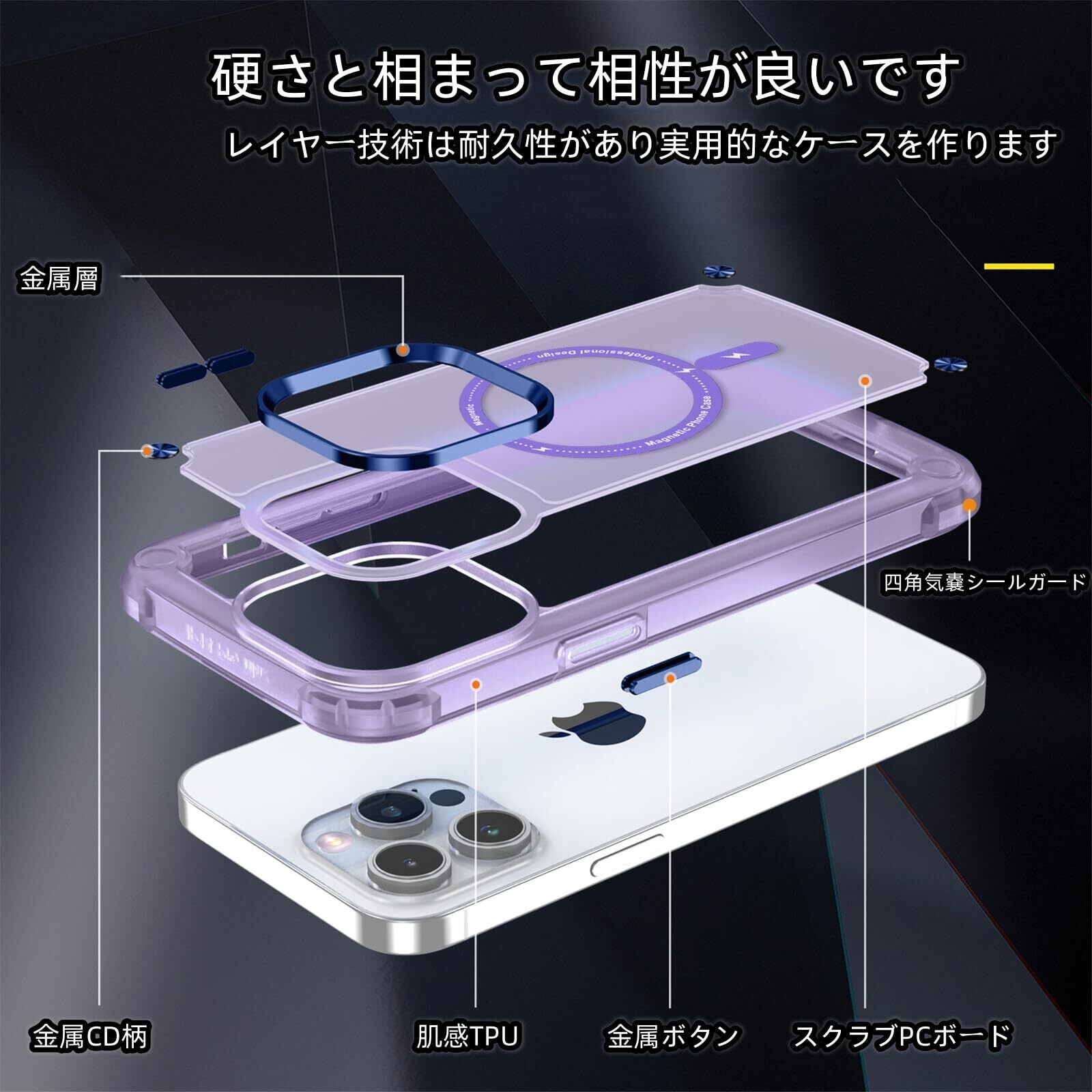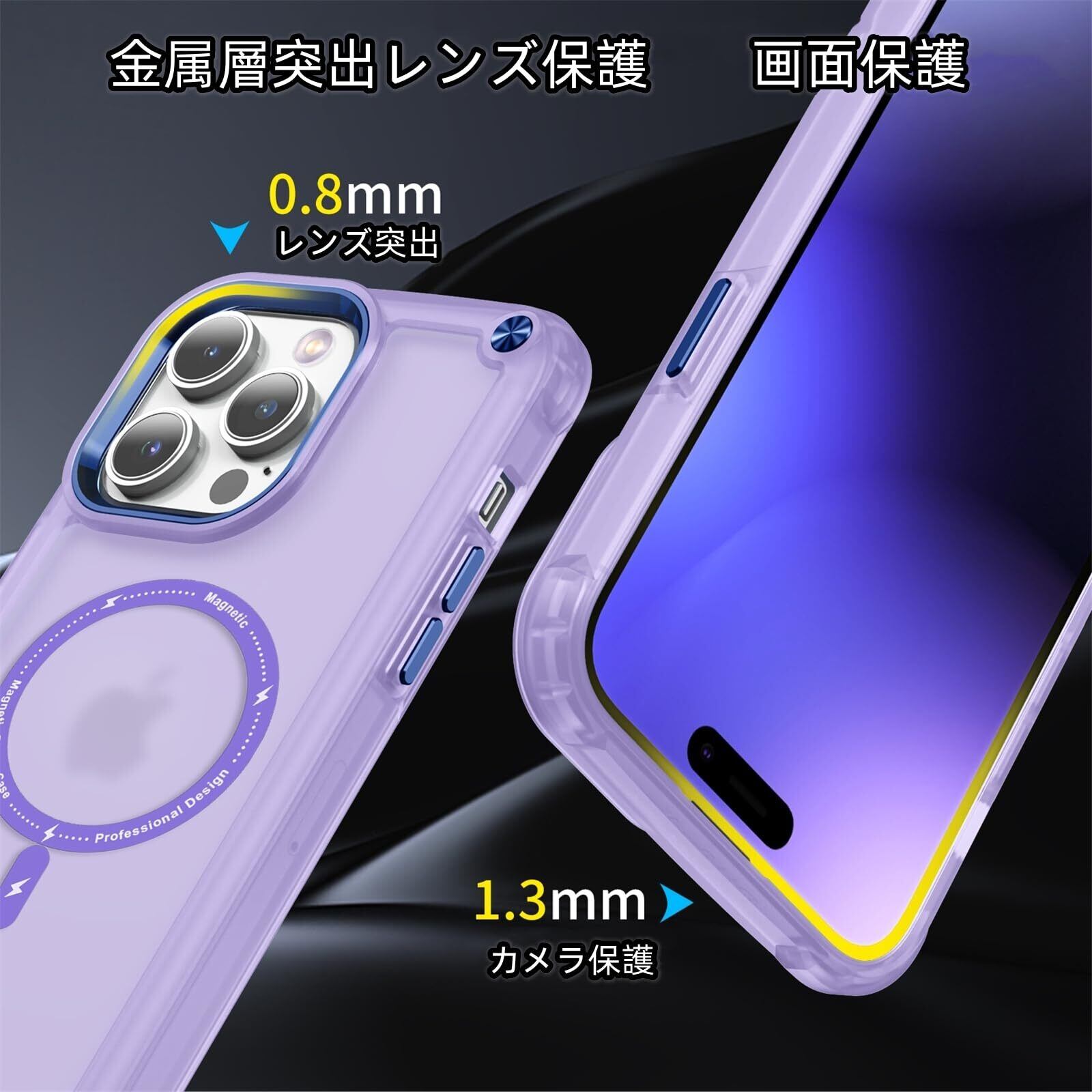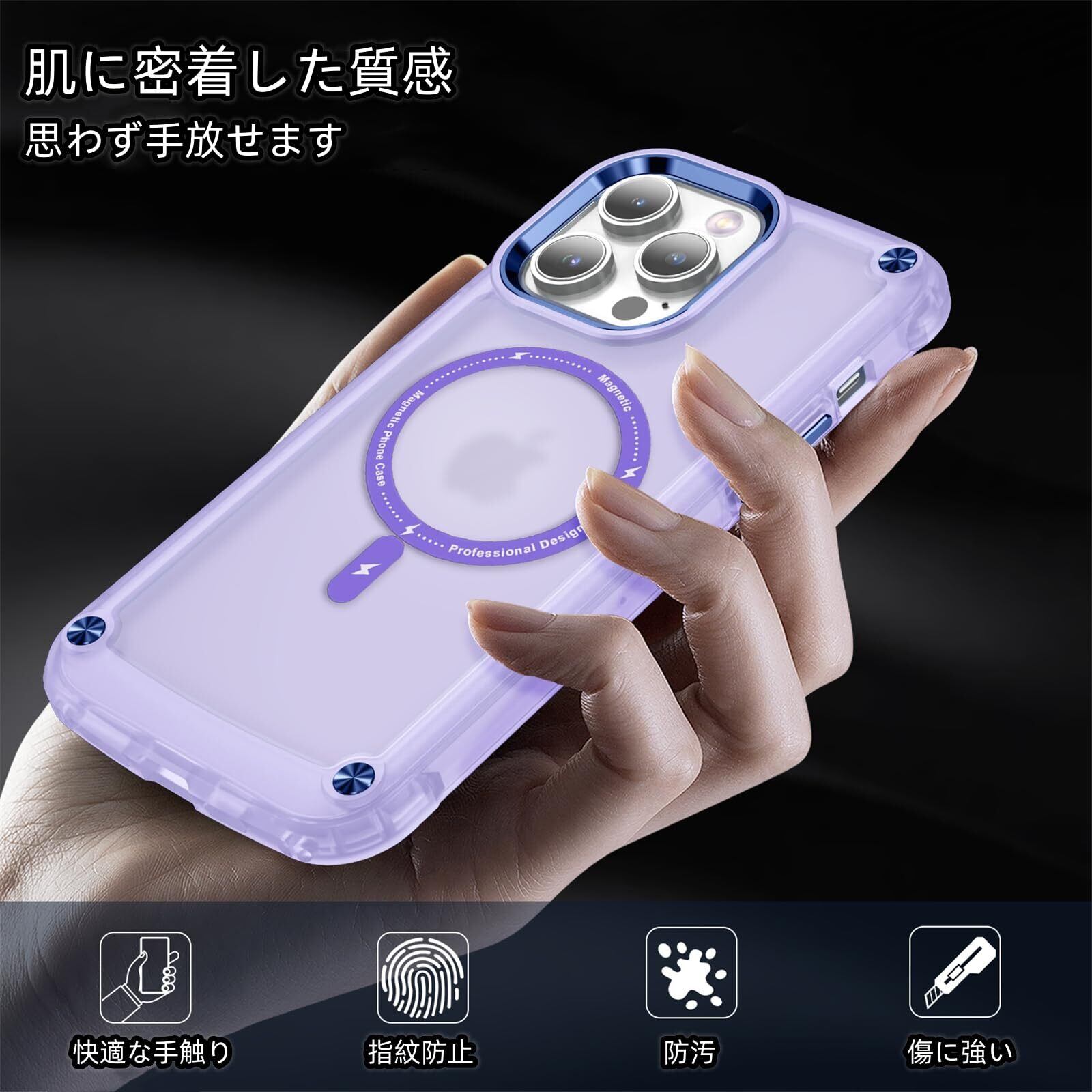 Kuoyida iPhone13 Pro 用ケース 磁気センサーリング搭載 Magsafe対応 米軍MIL規格 超耐衝撃 四角気嚢 半透明 サラサラ手触り 傷に強い背面 クリア 黄変しにくい 画面保護 レンズ保護 13proマグセーフ ケース・スマホケース iPhone 13pro人気 6.1インチ(クリアパープル, iPhone 13 Pro【2021】)
