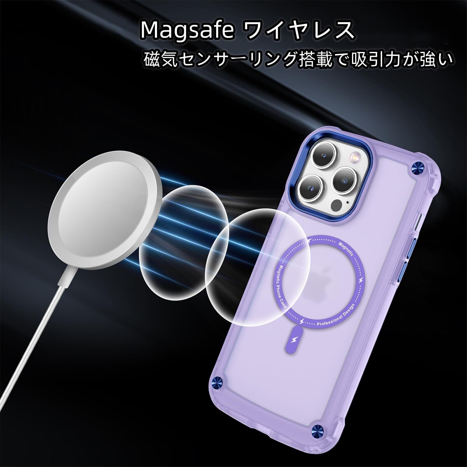 【強力な磁力吸着・高速充電体験】強力なマグネット搭載で差し込みのいらない超簡単充電を実現しました。マグネットによる正確な位置合わせで、ワイヤレス充電がこれまでよりもすばやく簡単に完了します。iPhone13 Proを充電する時は、ケースを装着したままMagSafe充電器に取り付けるか、Qi規格の充電器の上に置くだけです。