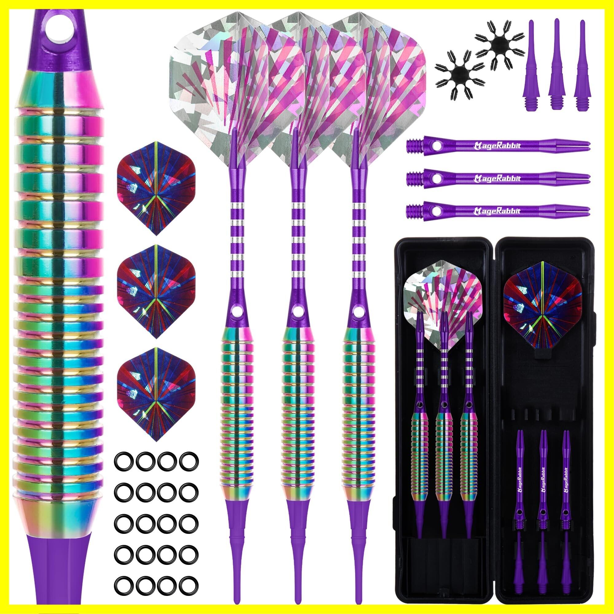 MageRabbitソフトチップダーツセット、3本のアルミシャフト、プロフェッショナルダーツ、3枚の予備ダーツフライト、3本の交換用プラスチックシャフト付き、銅素材のダーツ 16g 電子ダーツボード用, ダーツ 矢,ダーツ 矢 初心者