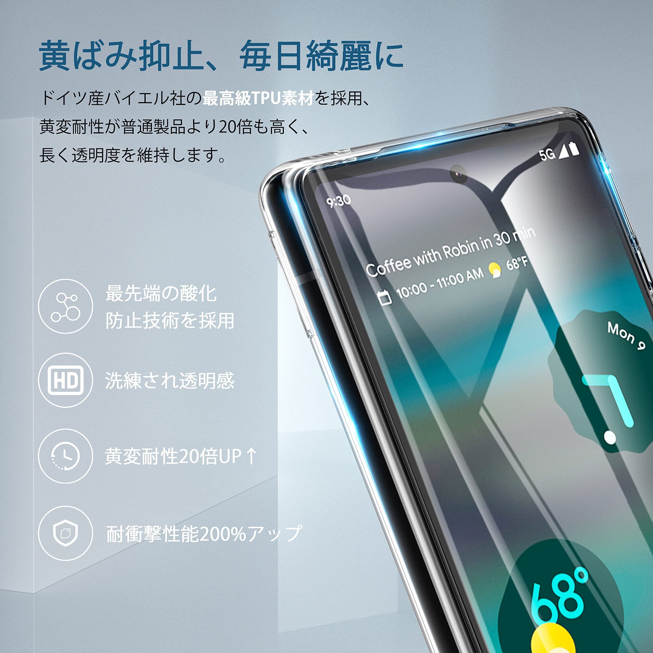 √【高透明感&黄変防止】新先端テクノロジーADM(Anti discoloration material)をTPUに使用。黄ばみ耐性が普通製品より高く、長く透明度を維持できます。全面透明により、Pixel6aの美しさをそのまま楽しむことが出来ます。また、ケースの内側に施された吸着に優れるマイクロドットは熱を効率的に放出し、ガラス面の水にじみを防ぎます。