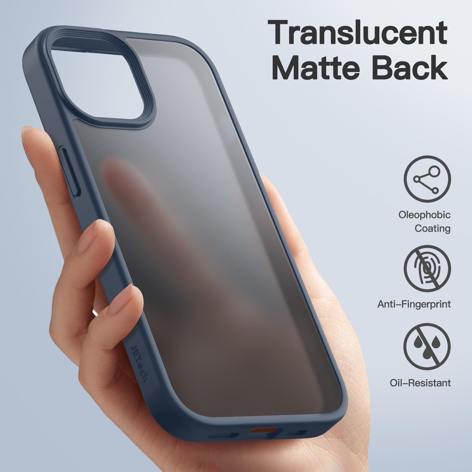 JETech マットケース iPhone 15 6.1インチ用 耐衝撃性ミリタリーグレードの落下防止 つや消しの半透明の背面電話カバー 指紋防止 (ストームブルー)