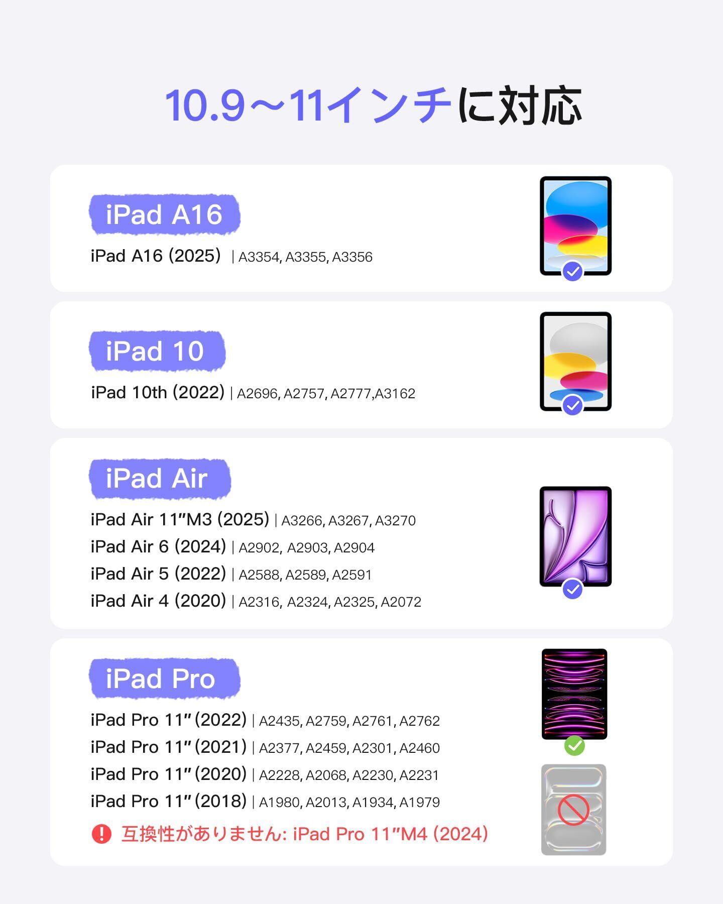 対応機種:当商品は、11インチiPad A16 第11世代2025/10.9インチiPad 第10世代2022、11インチiPad Pro 第4/3/2/1世代、iPad Air 11インチ M3 2025/M2 2024、iPad Air 第5世代/第4世代に特別に設計されています