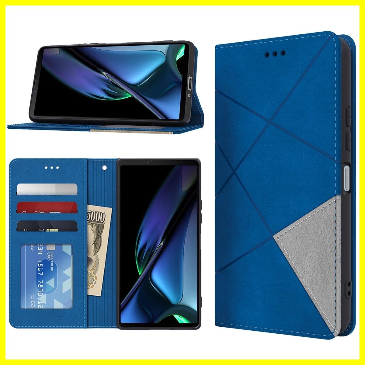 coiwantung Sony Xperia 10 vi 手帳型 ケース 耐衝撃 高级PUレザー エクスペリア 10vi スマホケース 財布型 横置きスタンド機能付 SO-52E SOG14 XQ-ES44 カバー カード収納 全面保護 ラップホール付き のあるソフトタッチ マグネット内蔵 擦り傷防止 ファッション 耐摩擦 シンプル気質 (ブルー)