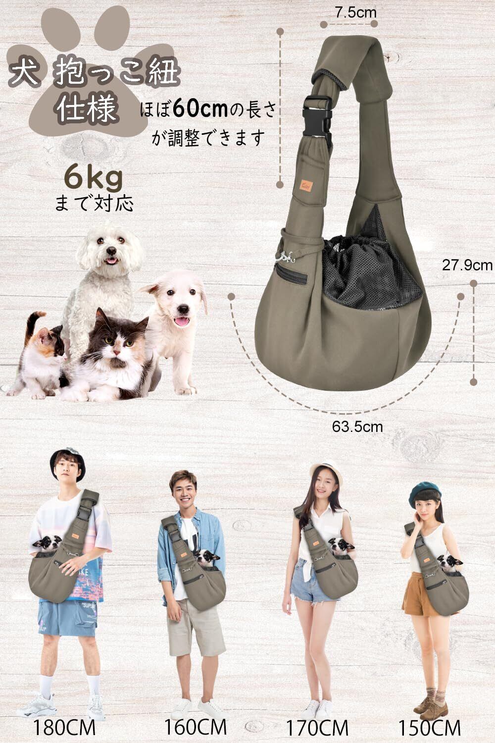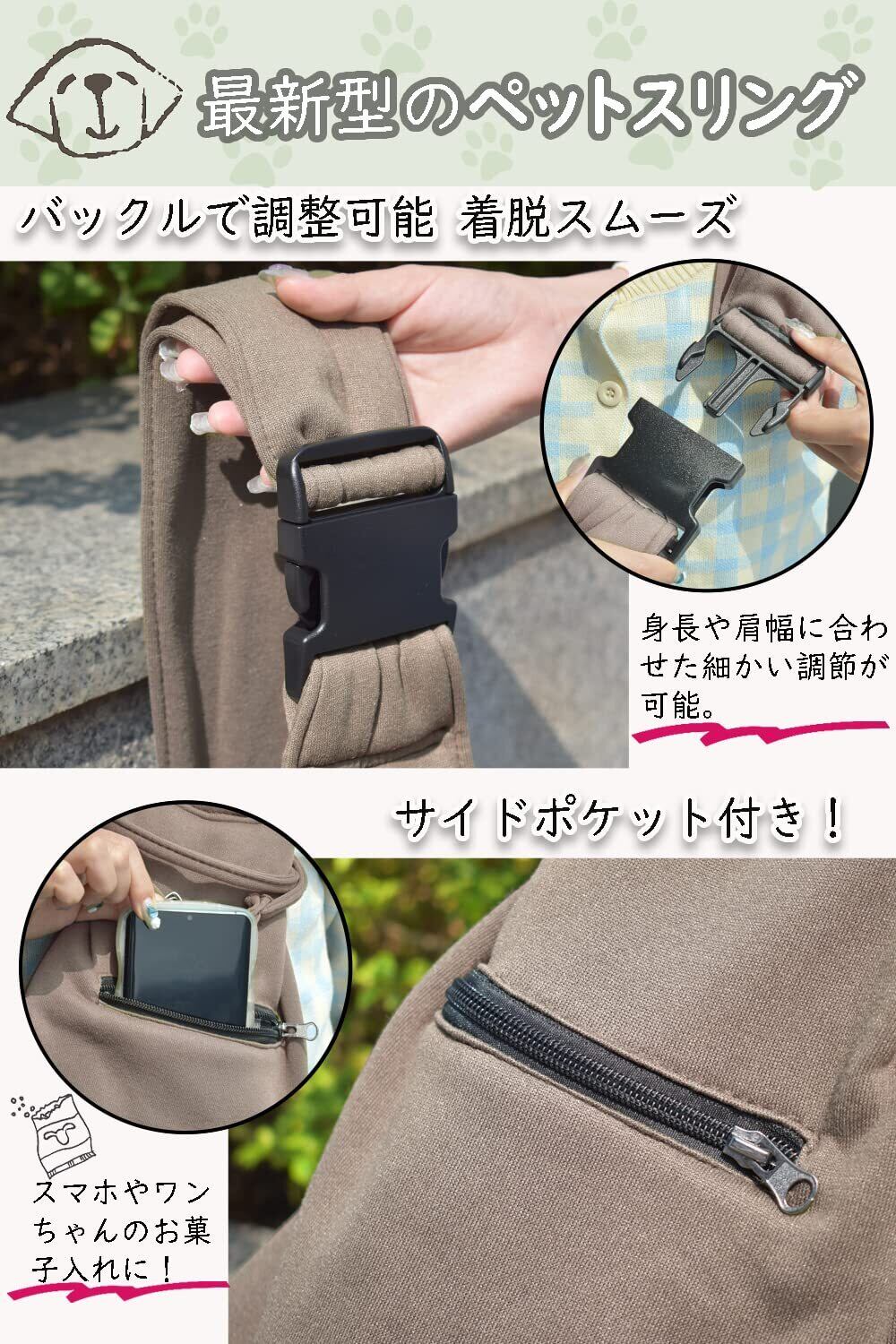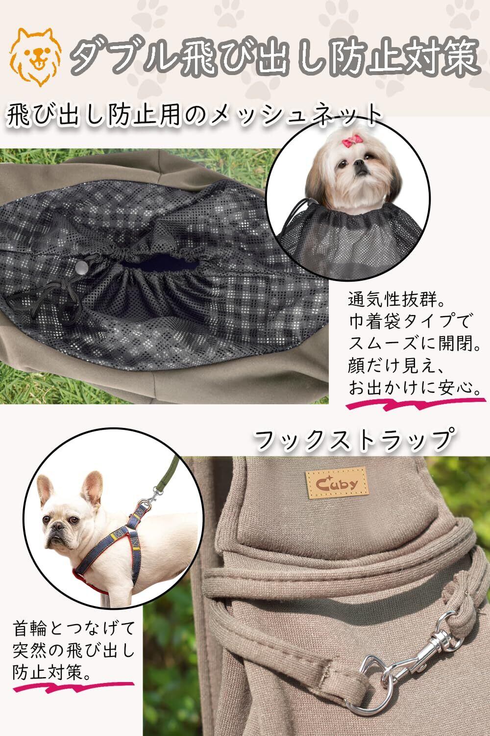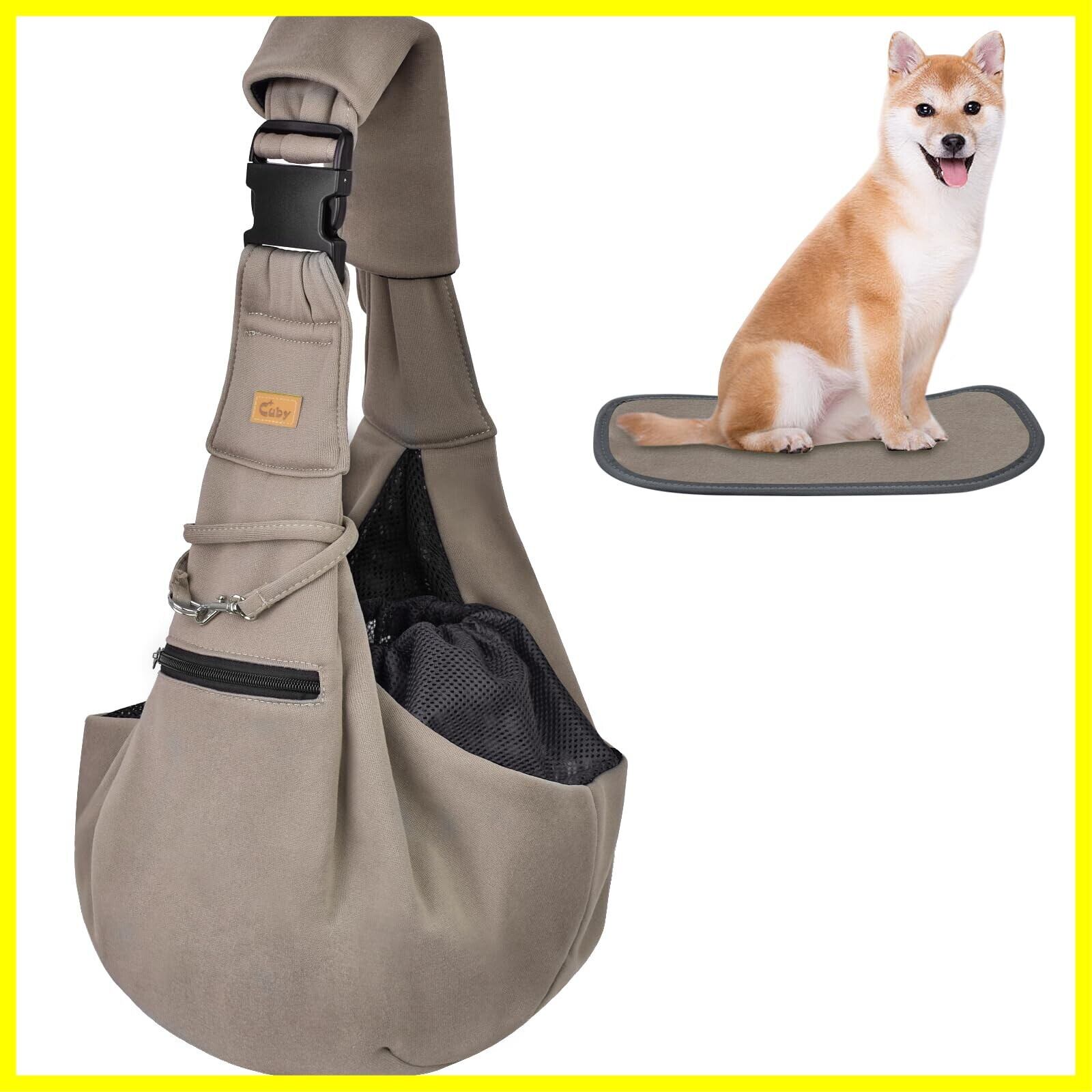CUBY 犬 抱っこ紐 スリング 中小型犬用 ペットスリング 猫 キャリーバッグ 長さ調整可能 底板付き 肩パッド付き 飛び出し防止 メッシュネット付き 10キロまで対応 (カーキ色)