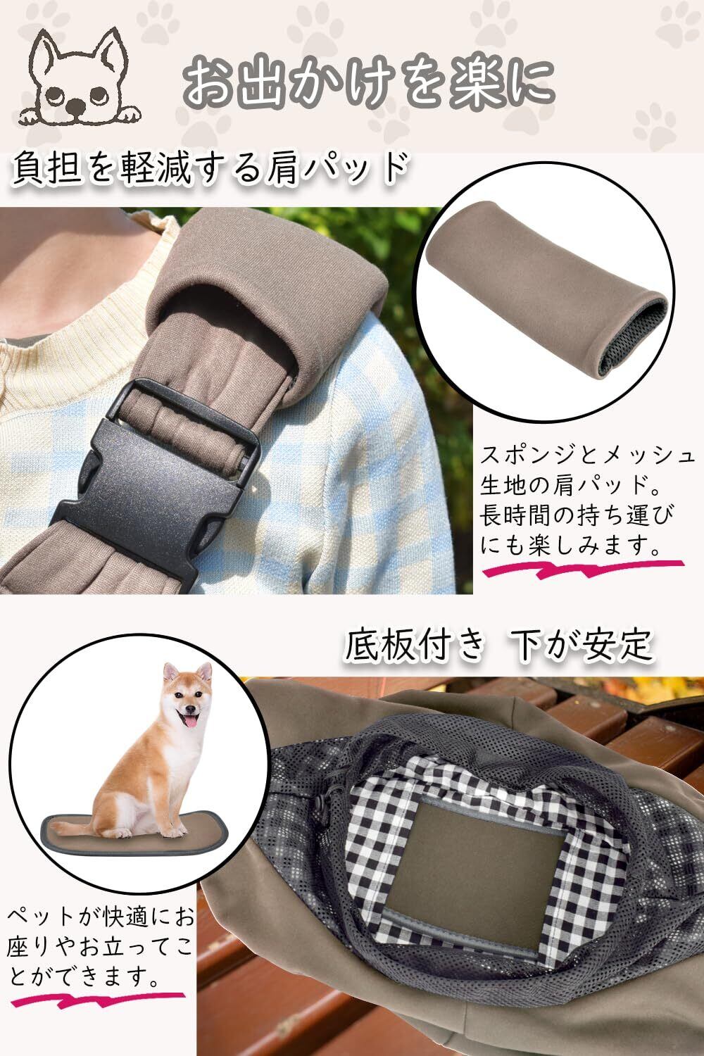 【肩パッド付き 長さ調整可能】スポンジとメッシュ生地のリムーバブル肩パッドが付き、肩の痛みの心配はありません。Cuby猫犬抱っこ紐の肩紐の長さは調整可能だから、身丈に合わせて長さを自由に調節できます。