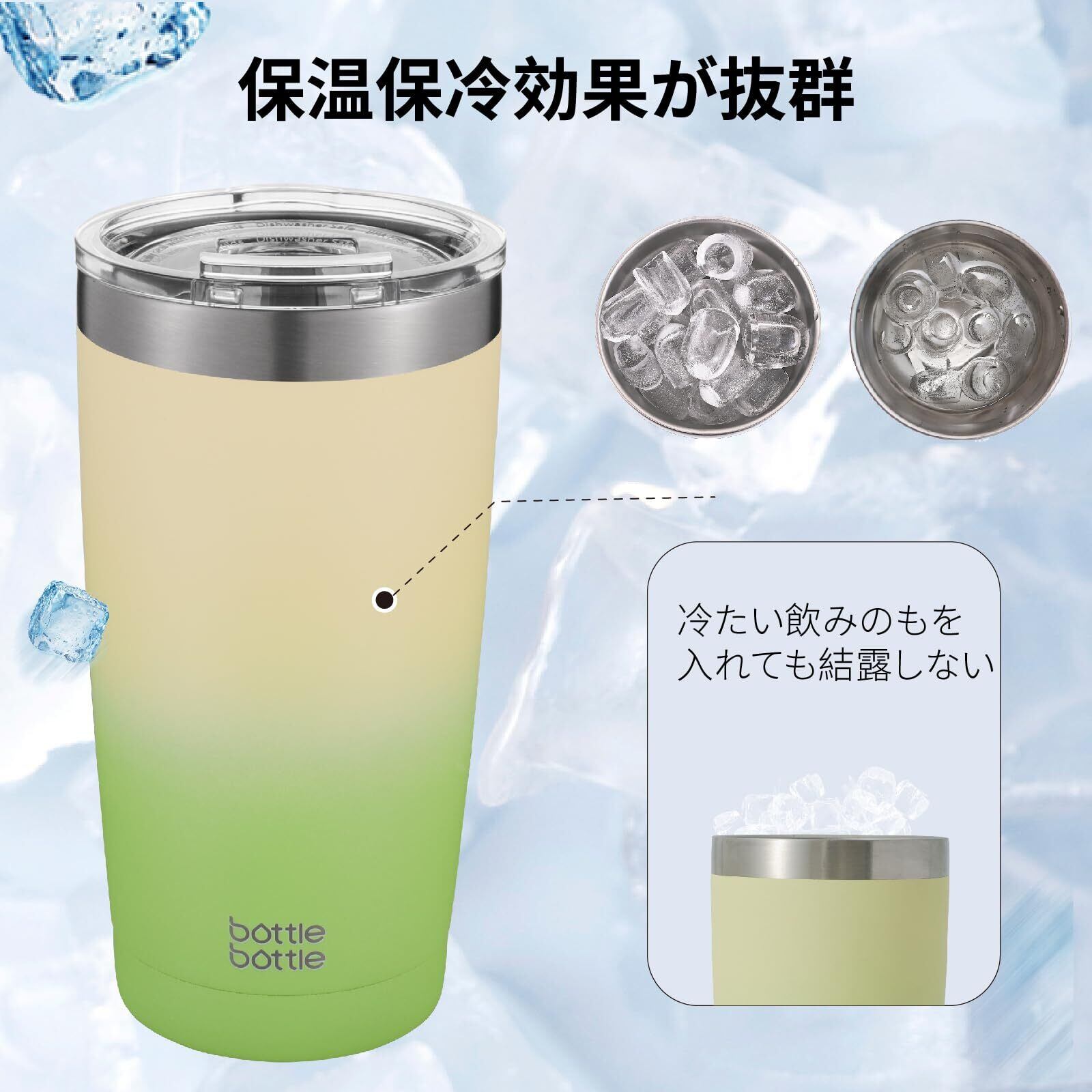 【真空断熱構造|優れた保温・保冷力】BOTTLE BOTTLEステンレス製タンブラーは、二重構造の真空断熱技術を採用し、飲み物の温度を長時間キープ。ホットコーヒーは温かく、アイスドリンクはしっかり冷たいまま持ち歩けます。季節を問わず、一年中快適に使えるマイタンブラーです。