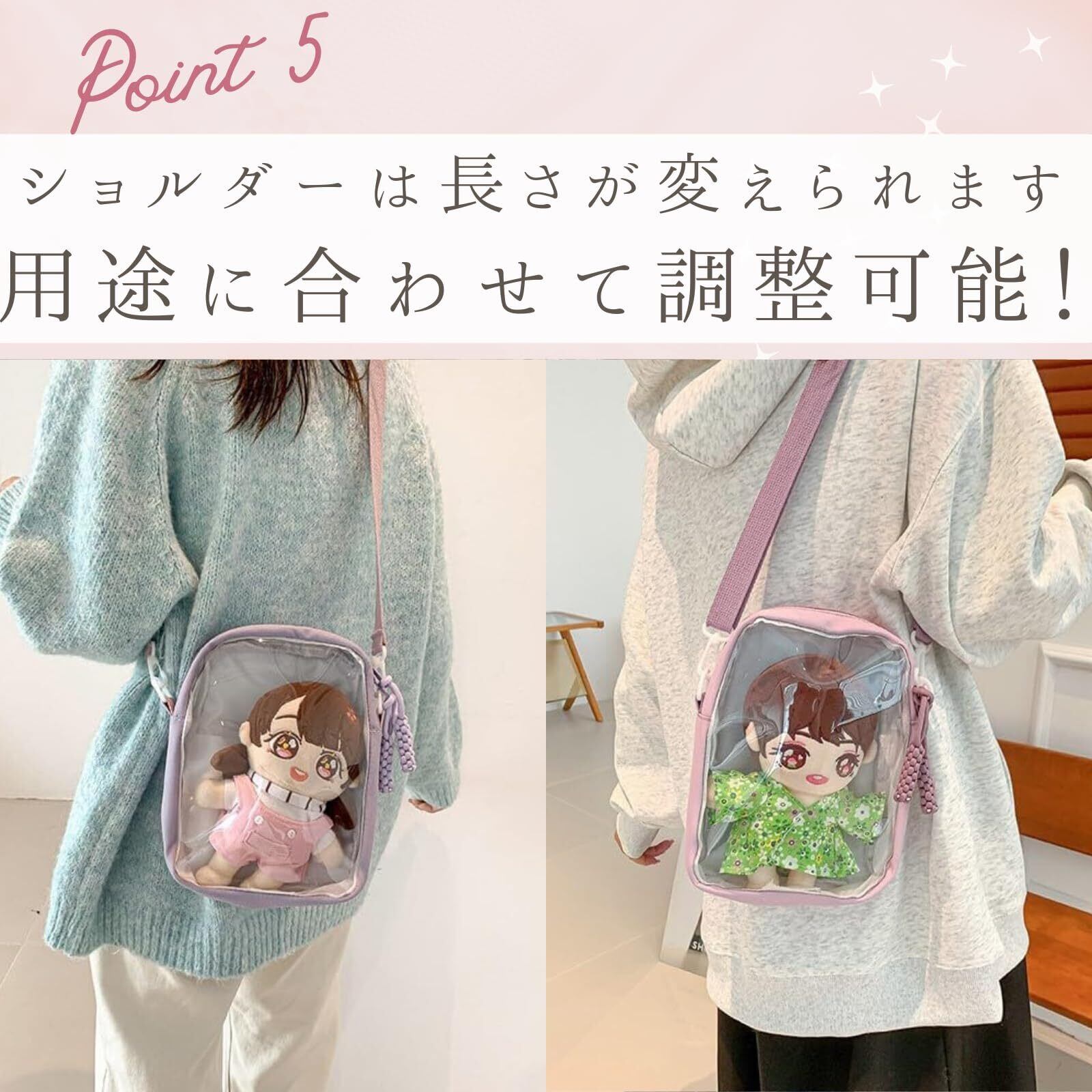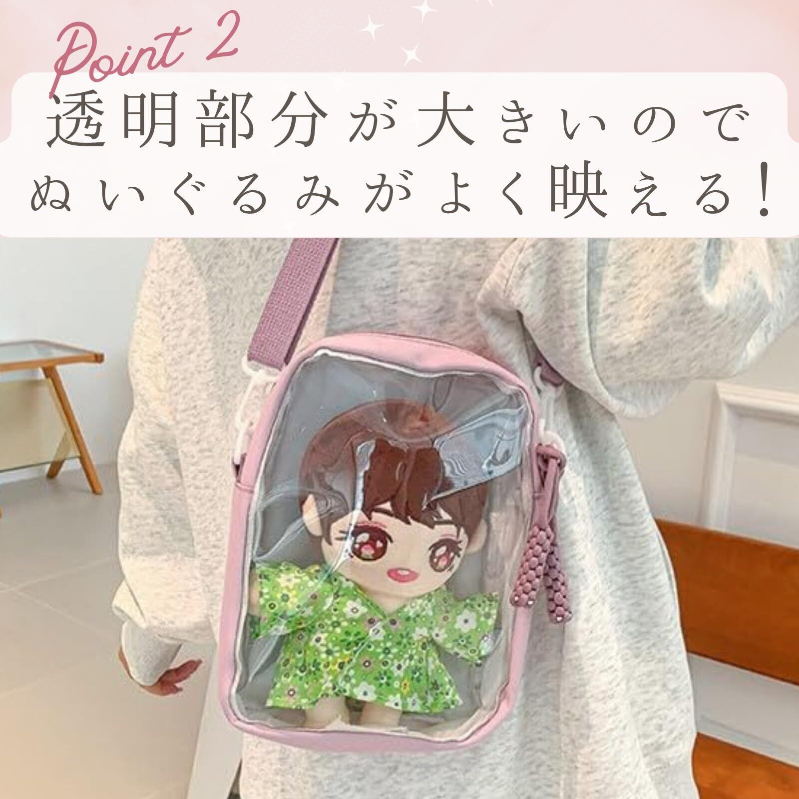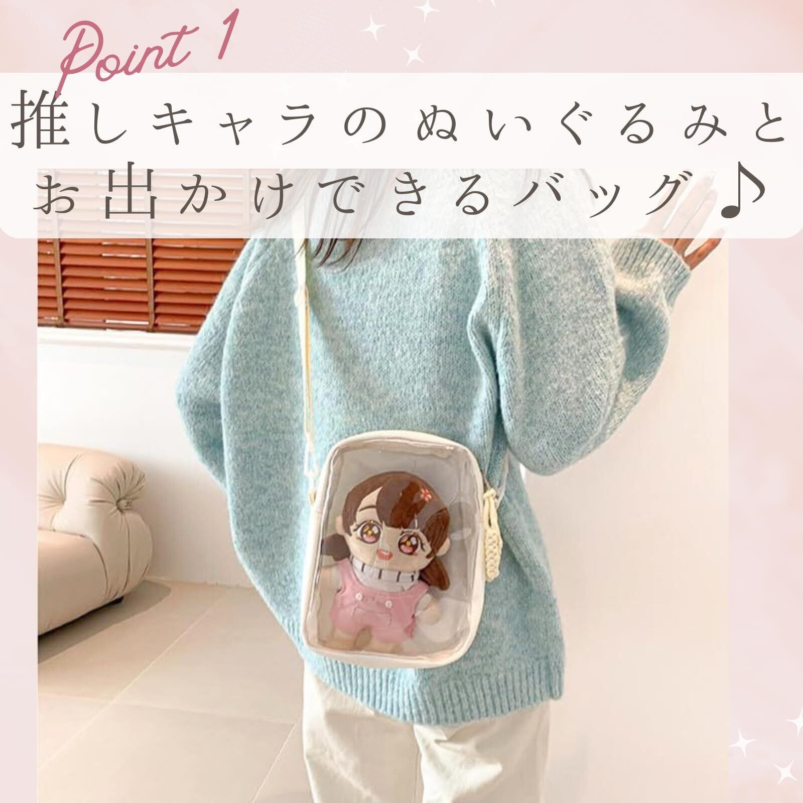 [ハルジオ] 推しぬいポーチ ぬいぐるみ持ち運び 推し活バッグ 痛バ ショルダー ミニ 20cm 黒 白 紫 ピンク 透明 クリア シンプル おしゃれ かわいい 人気