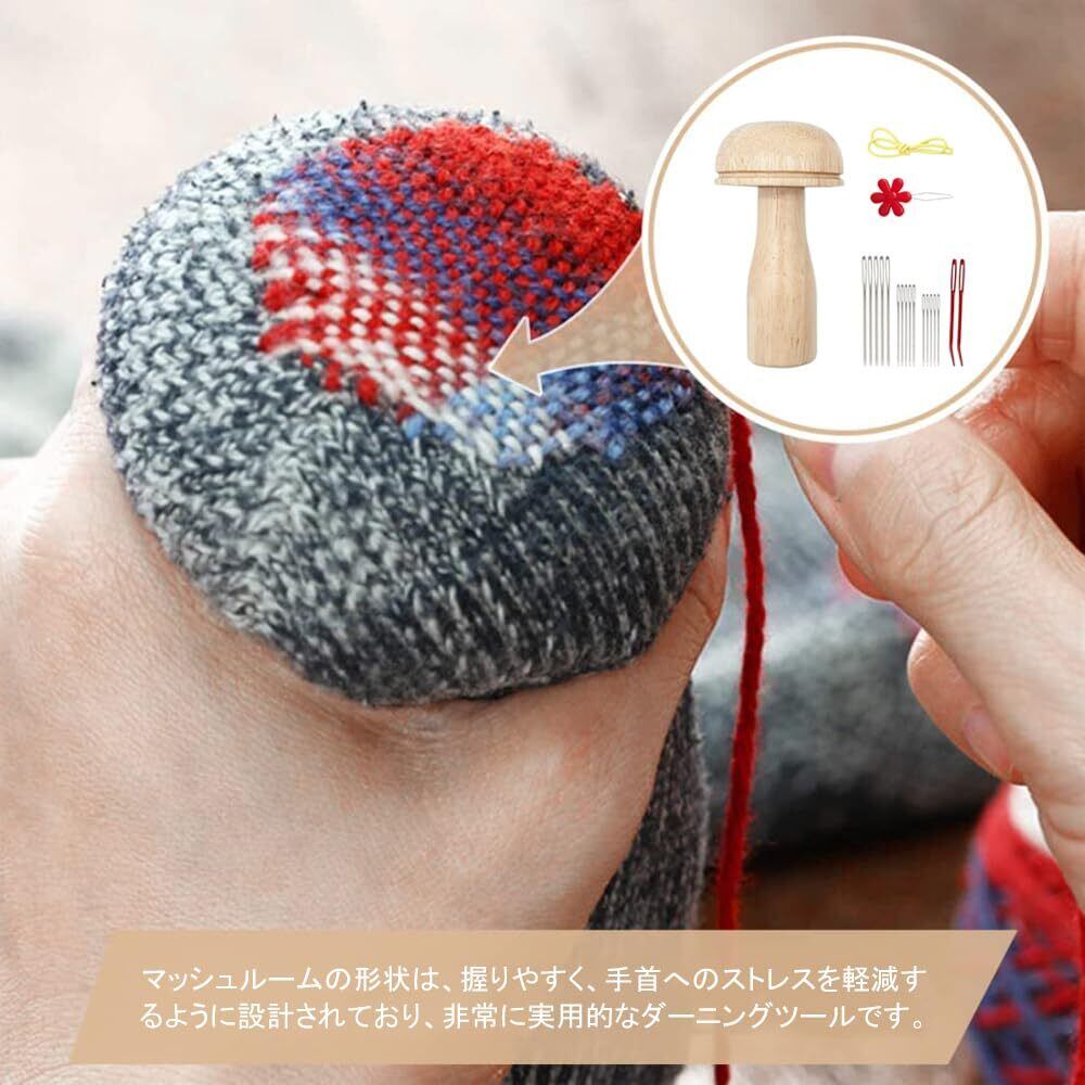【アプリケーション】衣類の虫食い穴、くつ下やデニムの穴や傷みのお繕い道具ダーニングマッシュルーム 。靴下、帽子、スカーフ、ズボン、セーターなどの修理に最適で。