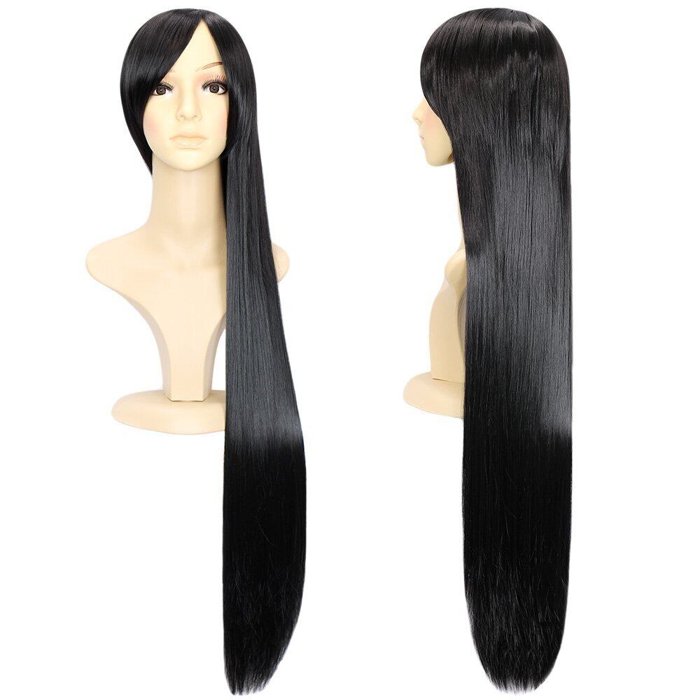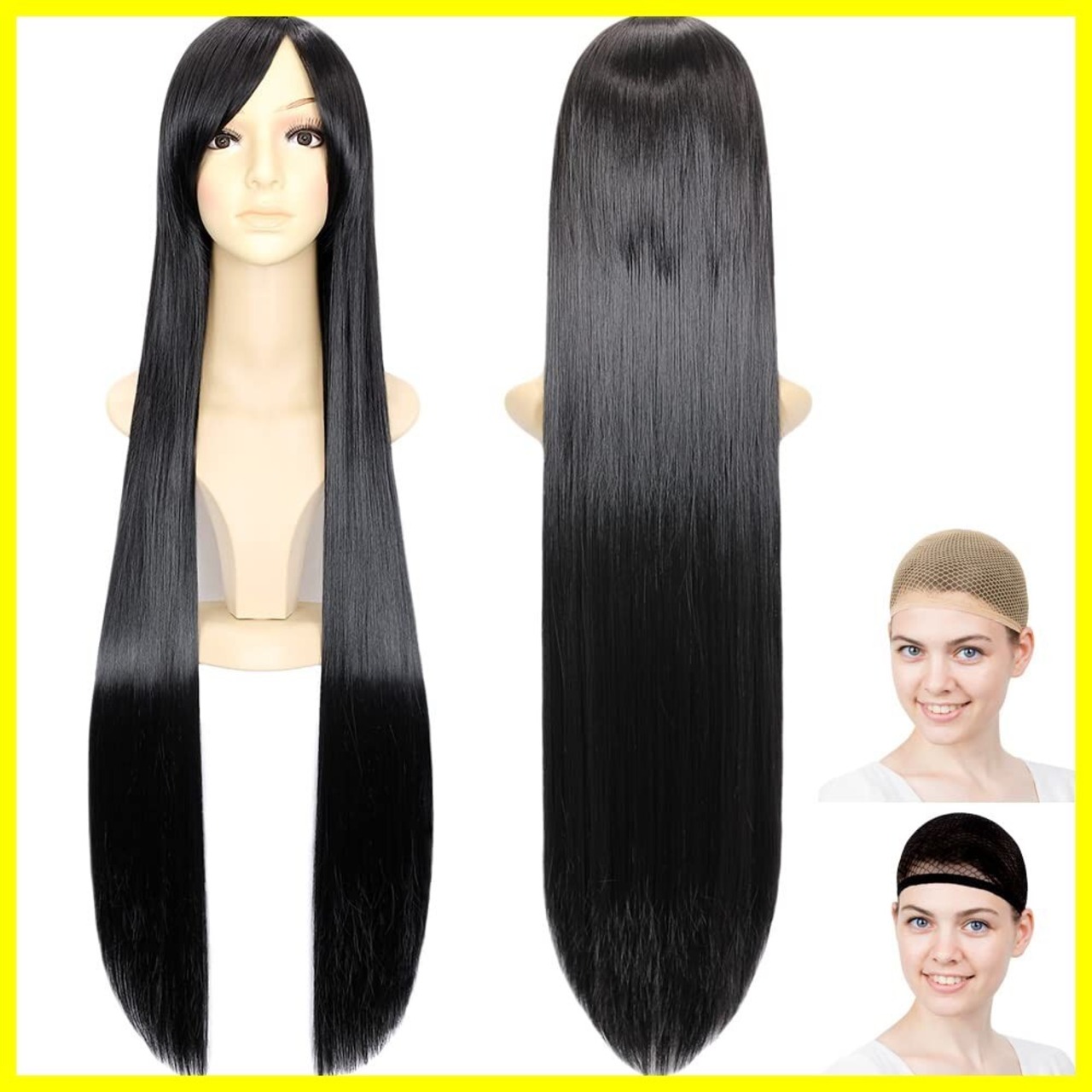 CaseEden スーパーロングストレート ウィッグ ウィッグネット 2個セット コスチューム用小物 ピュアブラック 100cm