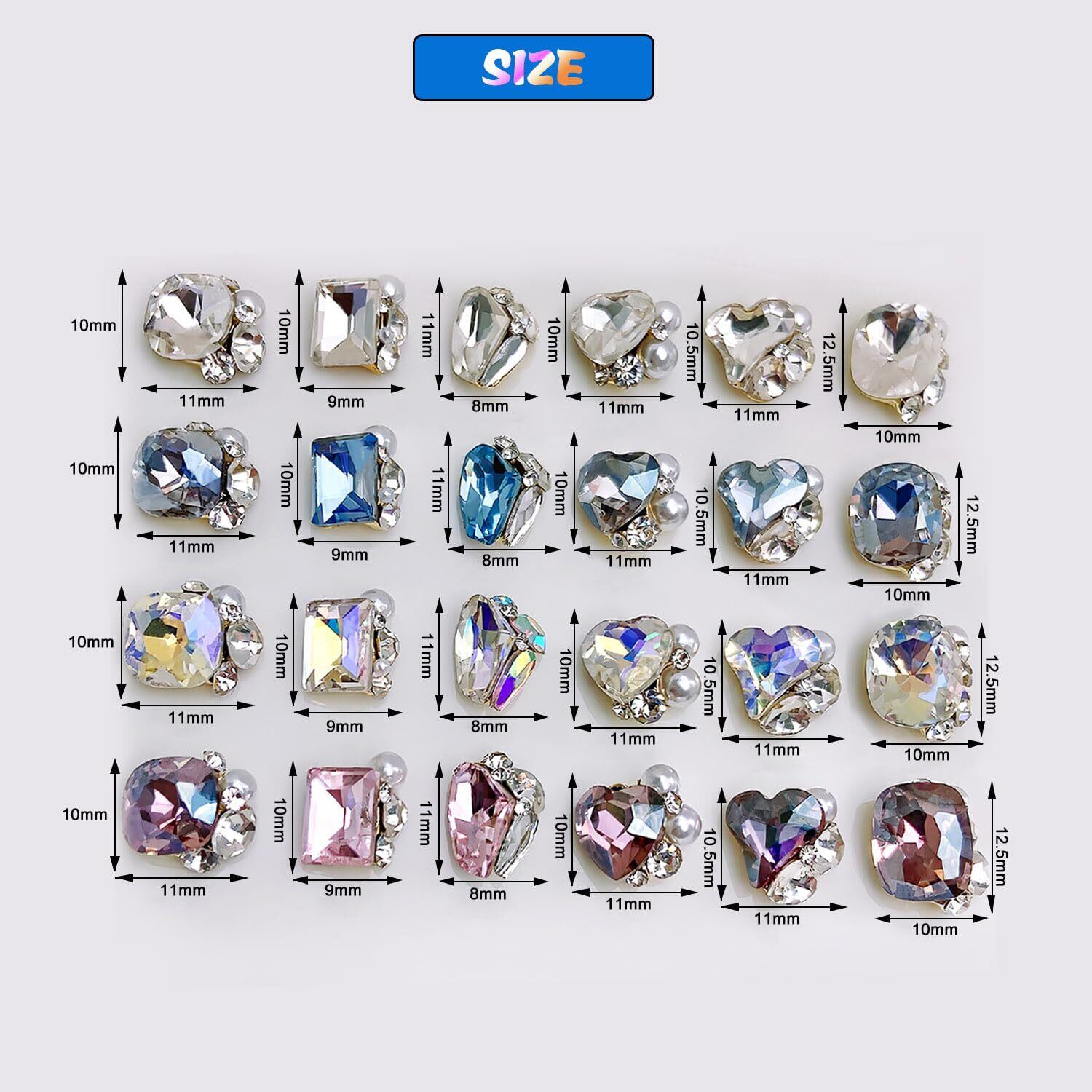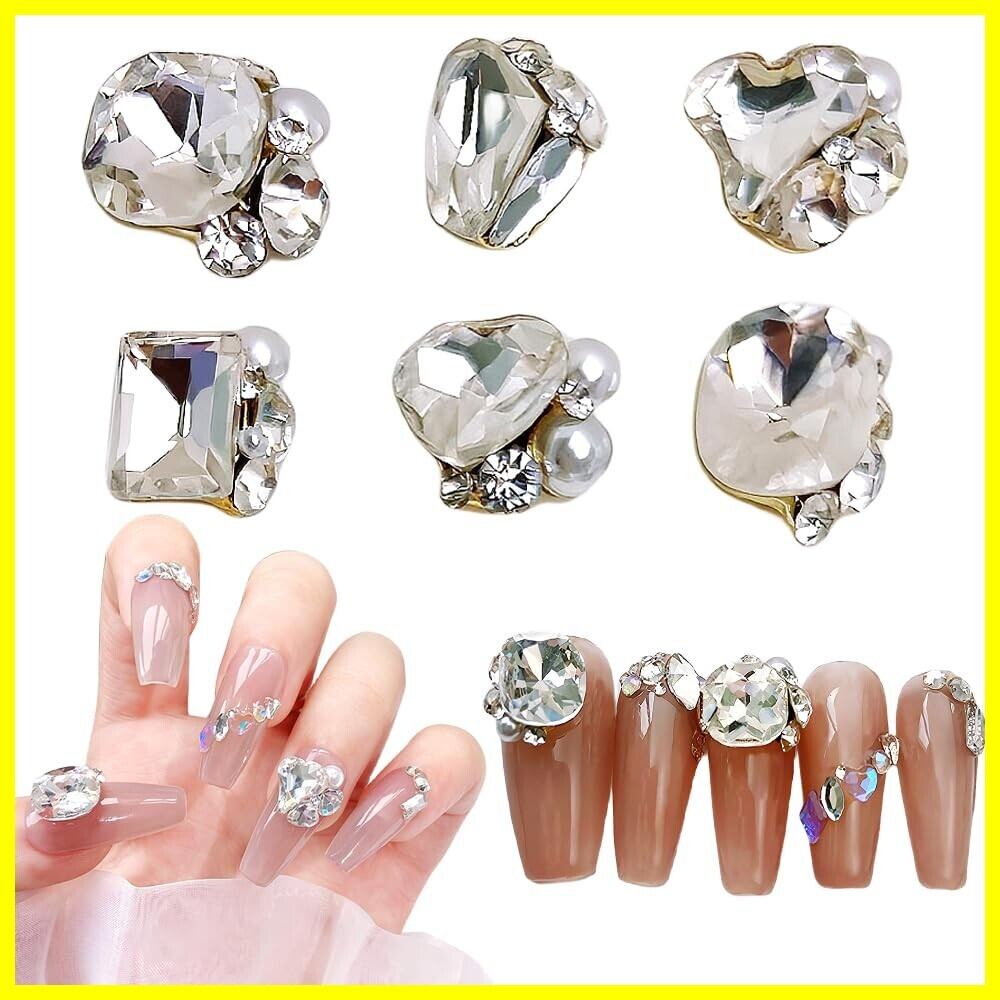 Chisafly ネイルストーン 大粒 ネイルパーツ ストーン クリスタル 宝石 キラキラ 立体 ハート スクエア 四角 レクタングル 6点セット (ホワイト)