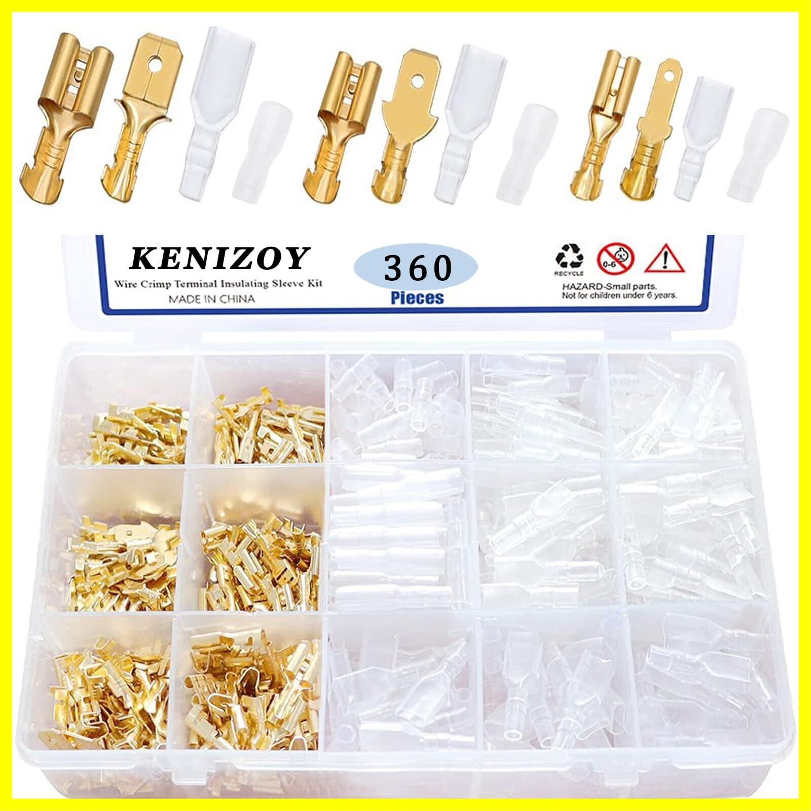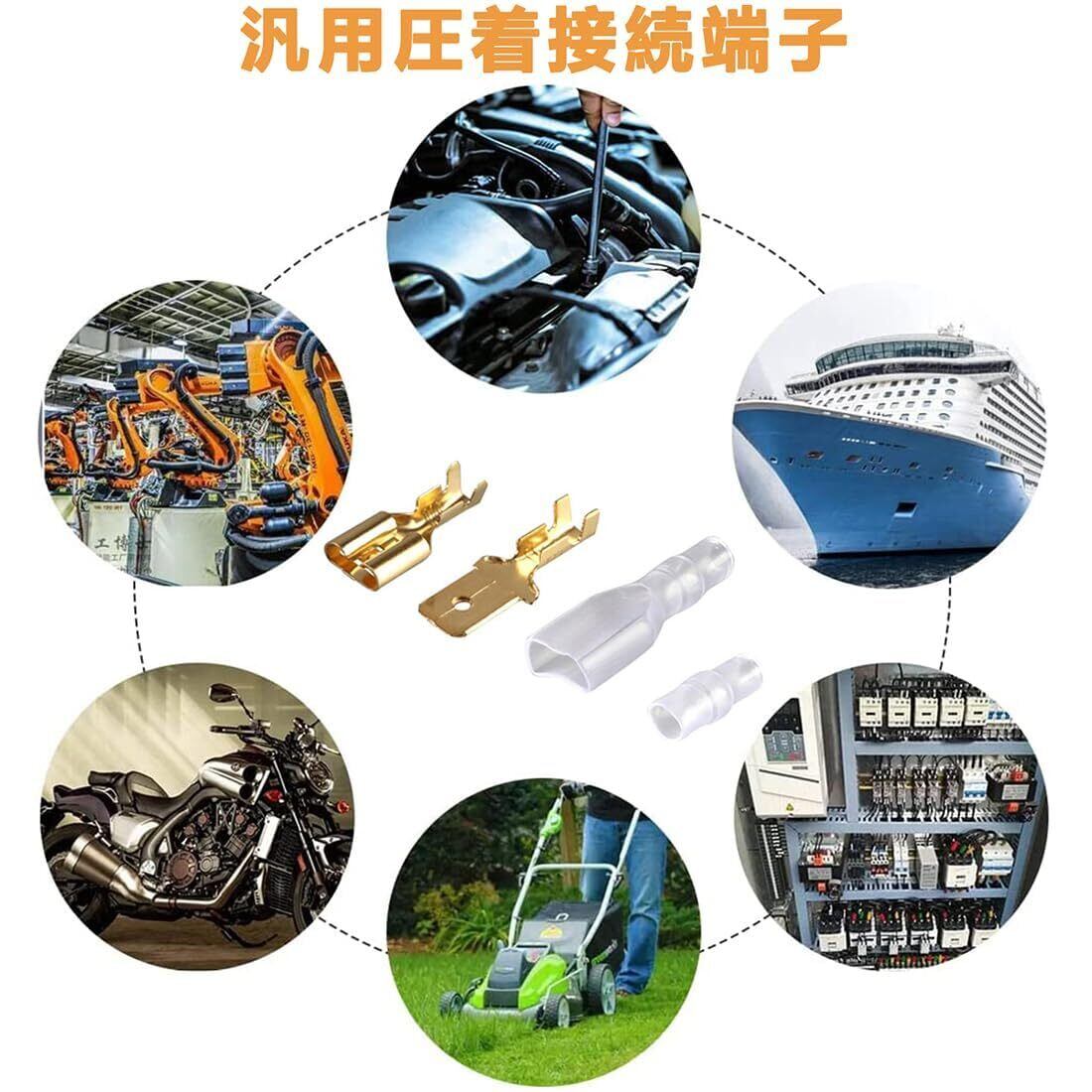 【優れた材質】平型端子は高品質な真鍮製で、錆び止め金メッキタイプ加工が施されて、良好な電気伝導性と耐久性があります。この接続端子セットは、十分な数のオス・メスヒラ端子、絶縁されたオス・メススリーブを備えていますので、安心してお使いください。