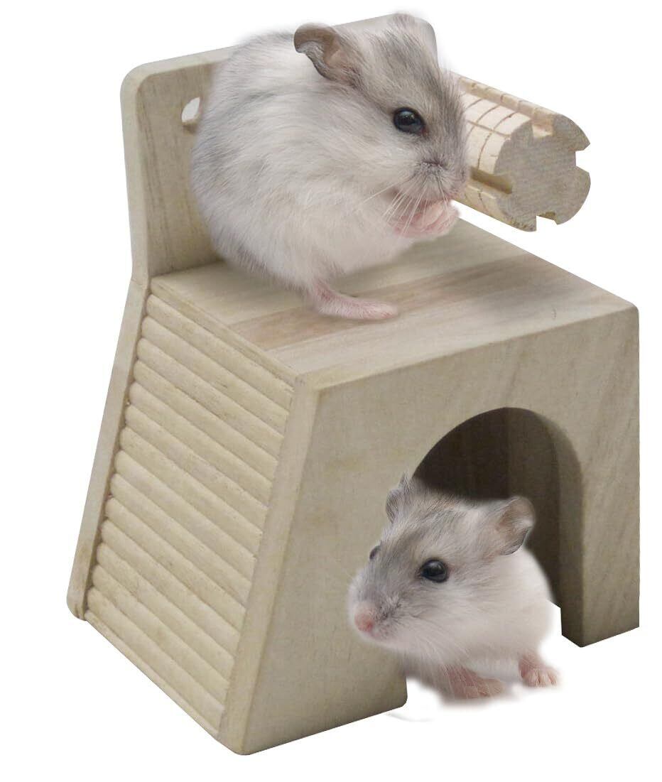 2階にかじり木をセットできるハムスターのおうち 使用方法 本体や付属の「かじり木コーンS」が汚れたり、傷んできたら新しいものと交換してください。別売りのマルカン「リス・ハムのあまえん棒」を取り付けることもできます。※3つの取り付け穴があります。お好きなところに取り付けてください。