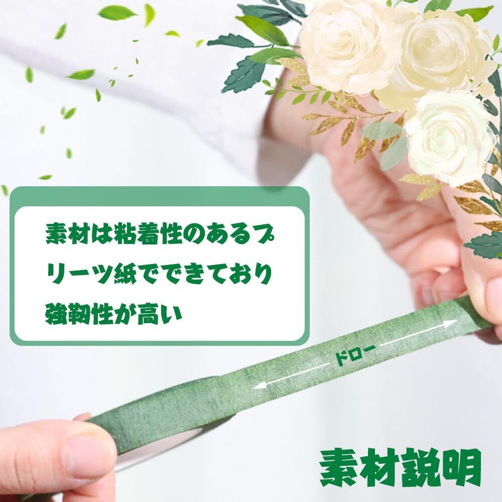 [材質]:フローラテープはクレープ紙を採用し、水ベースの接着剤材を採用しており 伸びがよくて、柔軟性もあります、引き裂きやすく、包みやすく