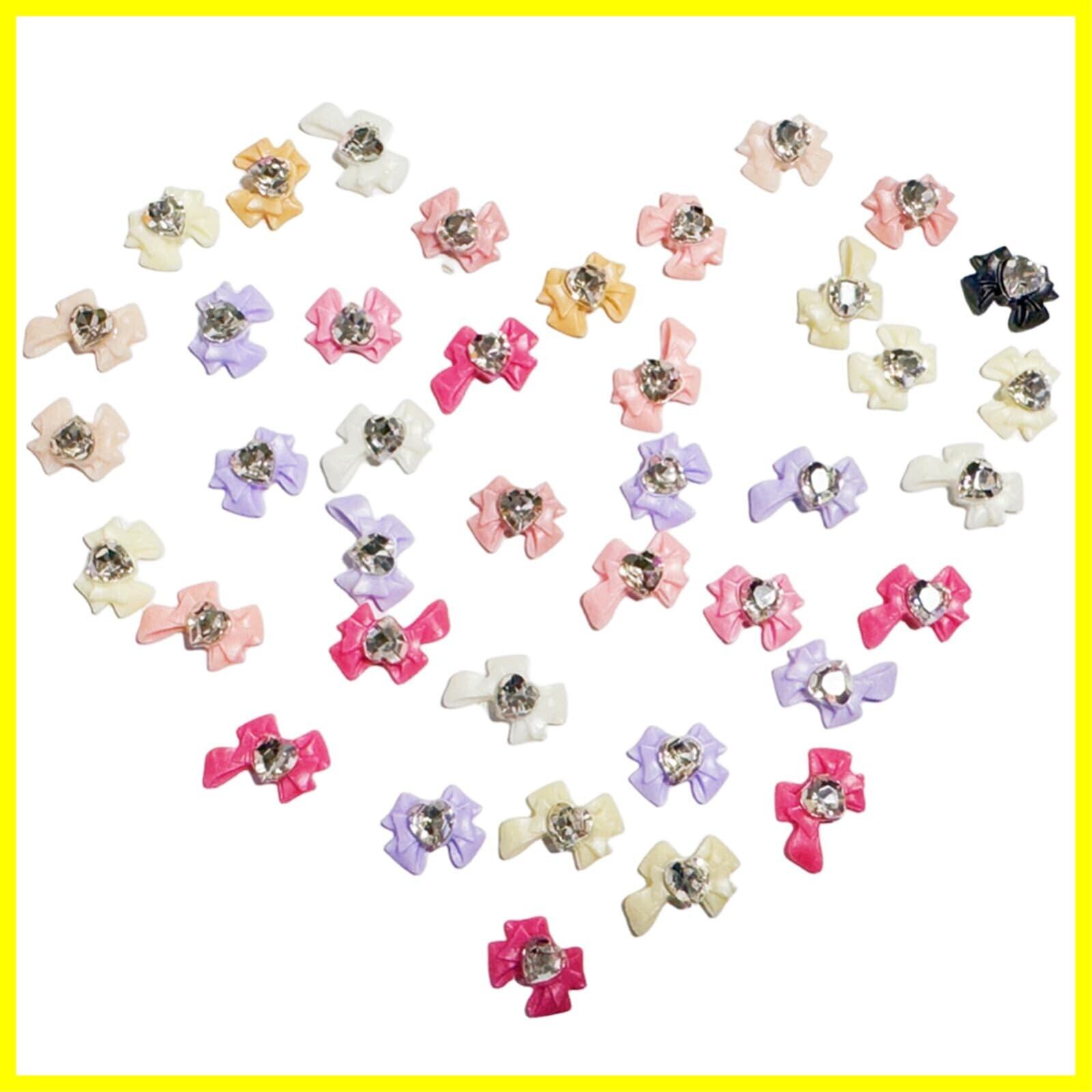 ネイルパーツ リボン 約40個セット 3d 立体 蝶結び ネイルパーツ ハートストーン 可愛い 大きい リボン パーツ ネイルアート ジュエリーパーツ レジン デコパーツ ランダム色 (ミックス B)
