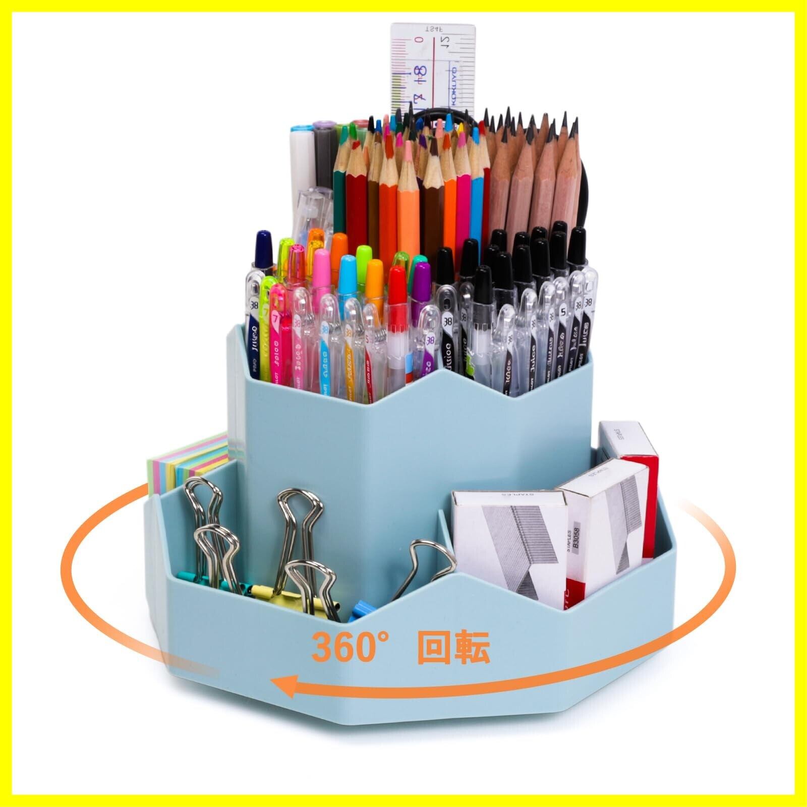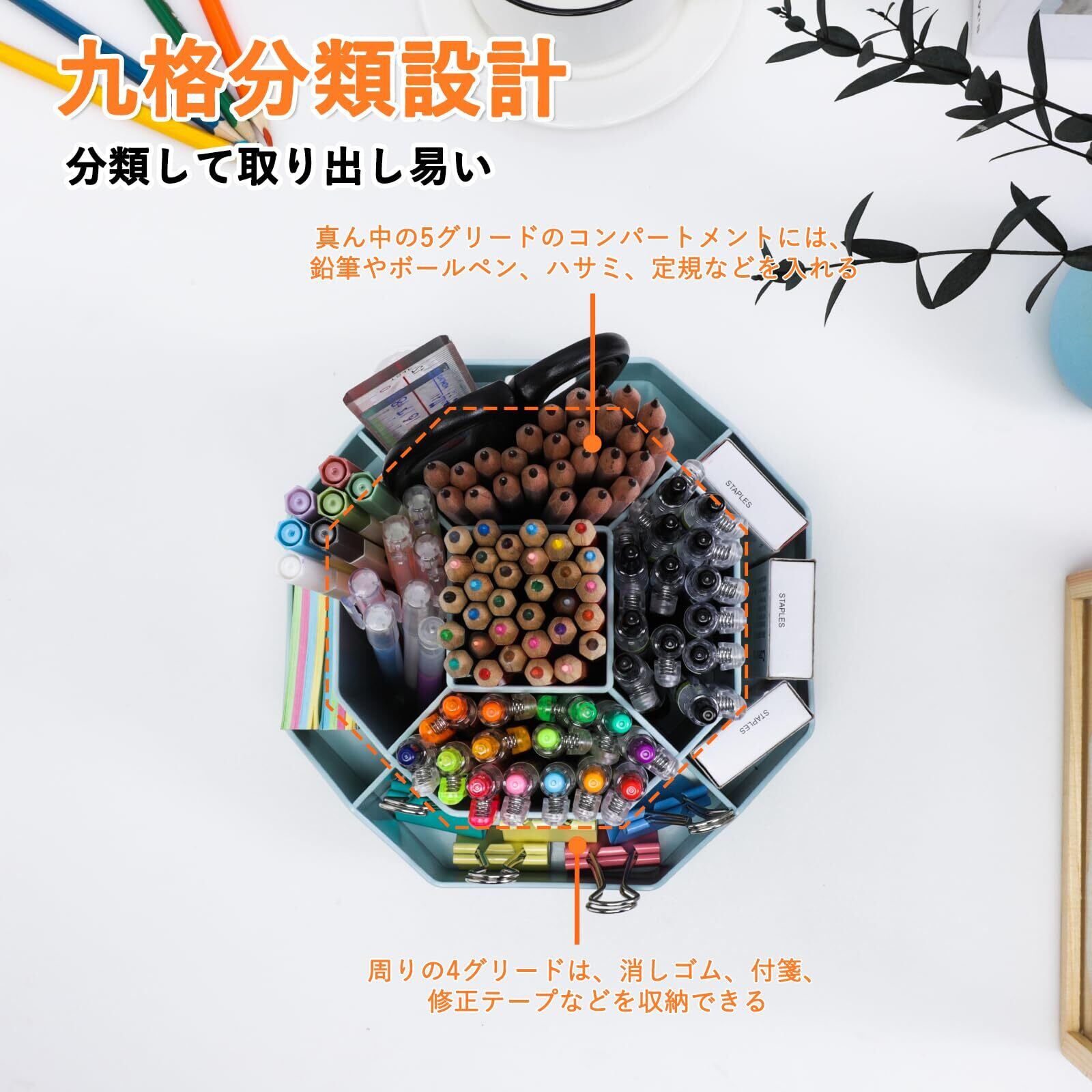 FRETONBA ペン立て 360度回転 ペンホルダー 大容量 9グリード分類鉛筆たて 多機能 分類箱 デスクオーガナイザー 小物分類 卓上収納 文房具 化粧品 収納 便利 オフィス 家庭生活用 収納ボックス おしゃれ ブルー