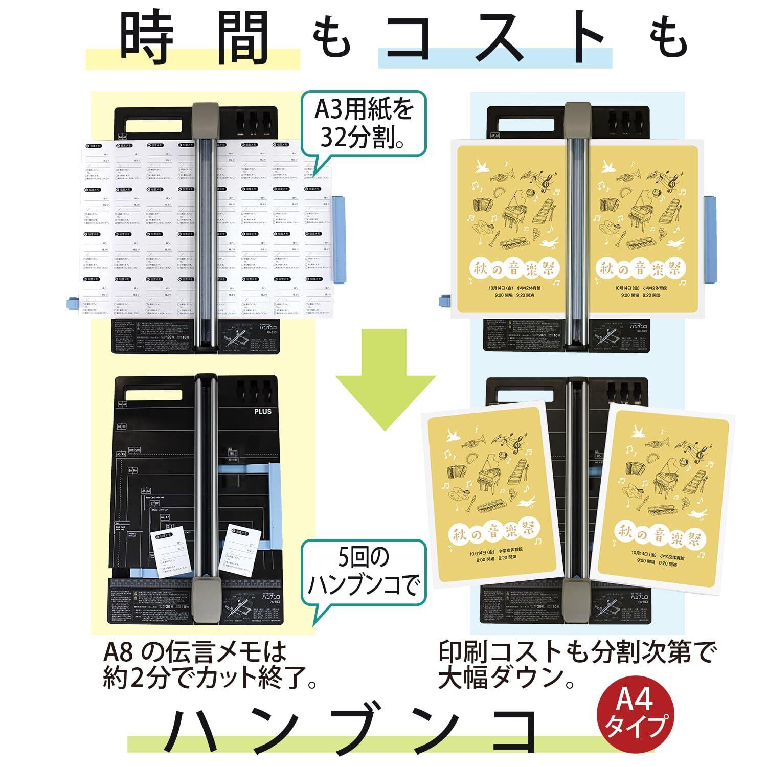 プラス 裁断機 ペーパーカッター ハンブンコ A4 20枚裁断 PK-813