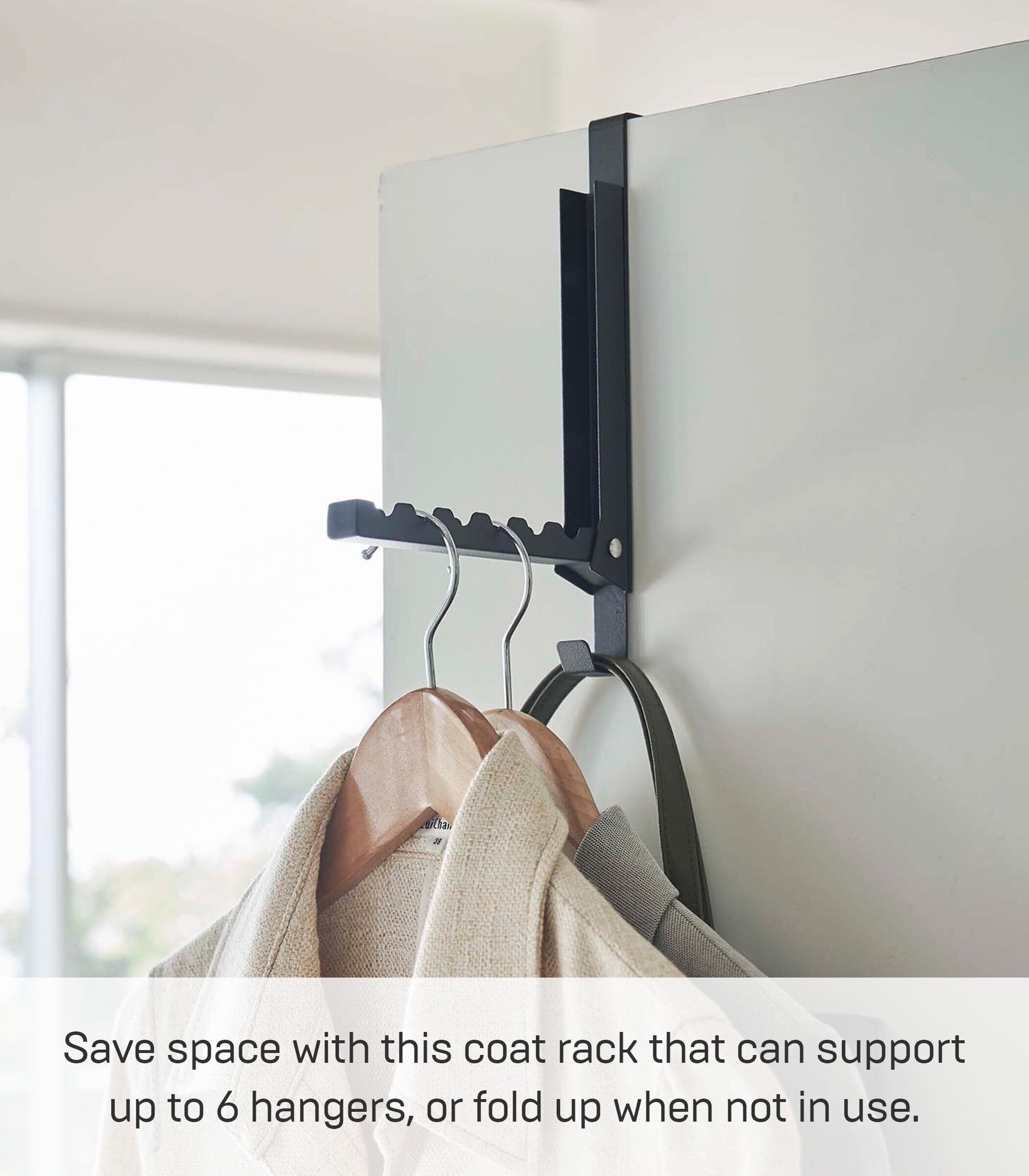 山崎実業(Yamazaki) 使わない時は収納できる ドアハンガー ブラック 約W2XD20.5XH23.5cm(使用時) タワー 折り畳み スッキリ収納 簡単設置 5515