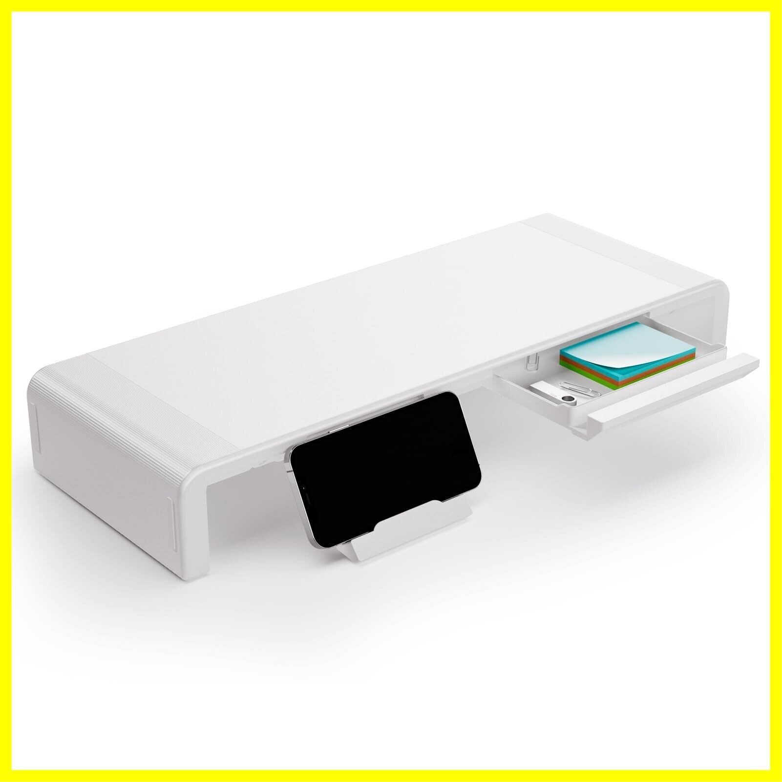 工匠藤井 机上台 折りたたみ式モニタースタンド 卓上 パソコン台 ディスプレイスタンド 幅3段階調節 キーボード収納 スマホ&タブレットスタンド 引き出し付き 耐荷重50kg 省スペース 組み立て不要 ホワイト