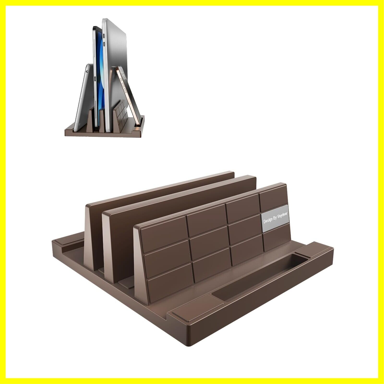 VAYDEER 縦型 ノートパソコンスタンド PCスタンド 縦置き 携帯電話ホルダー 4-in-1収納 幅調整可能 laptop stand ABS樹脂製 MacBook/iPad/Chromebook/Surface/Dellなどに対応(チョコレートいろ)