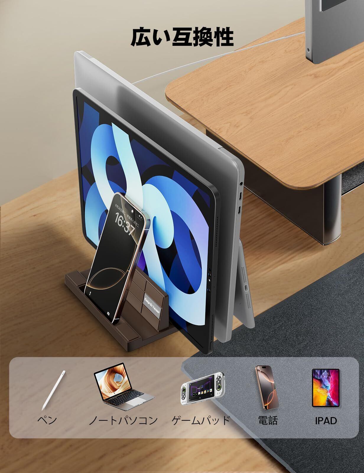 熱拡散:縦型の構造により、デバイスの周囲に自然な空気の流れを作り出し、ノートパソコンが長時間使用中に過熱するのを防ぎ、冷却効果を高めます。