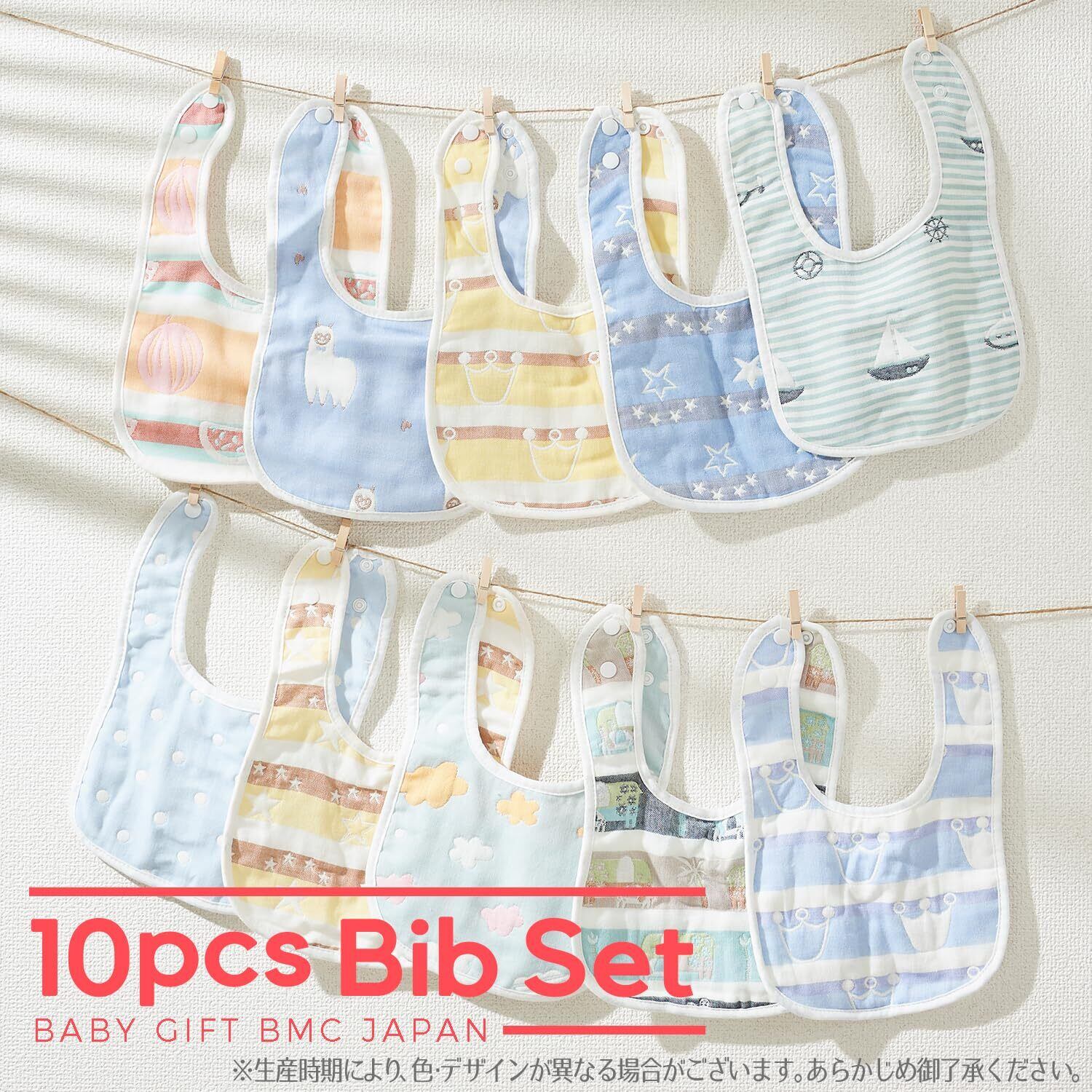 [BMC bib.] スタイ 10枚 セット よだれかけ ビブ 綿100% 柔らかい 6重 ガーゼ U型